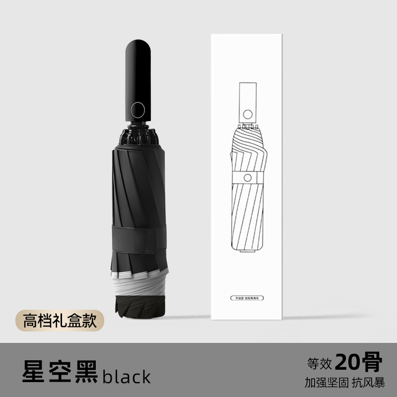 • 플래그십 역전 풀 쉐이딩 우산 [20 뼈 강화 폭풍 저항] 스타 블랙