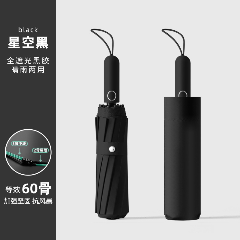 • 기본 자동 검은 고무 우산 [10 뼈 이중 사용] 별이 빛나는 하늘 검정