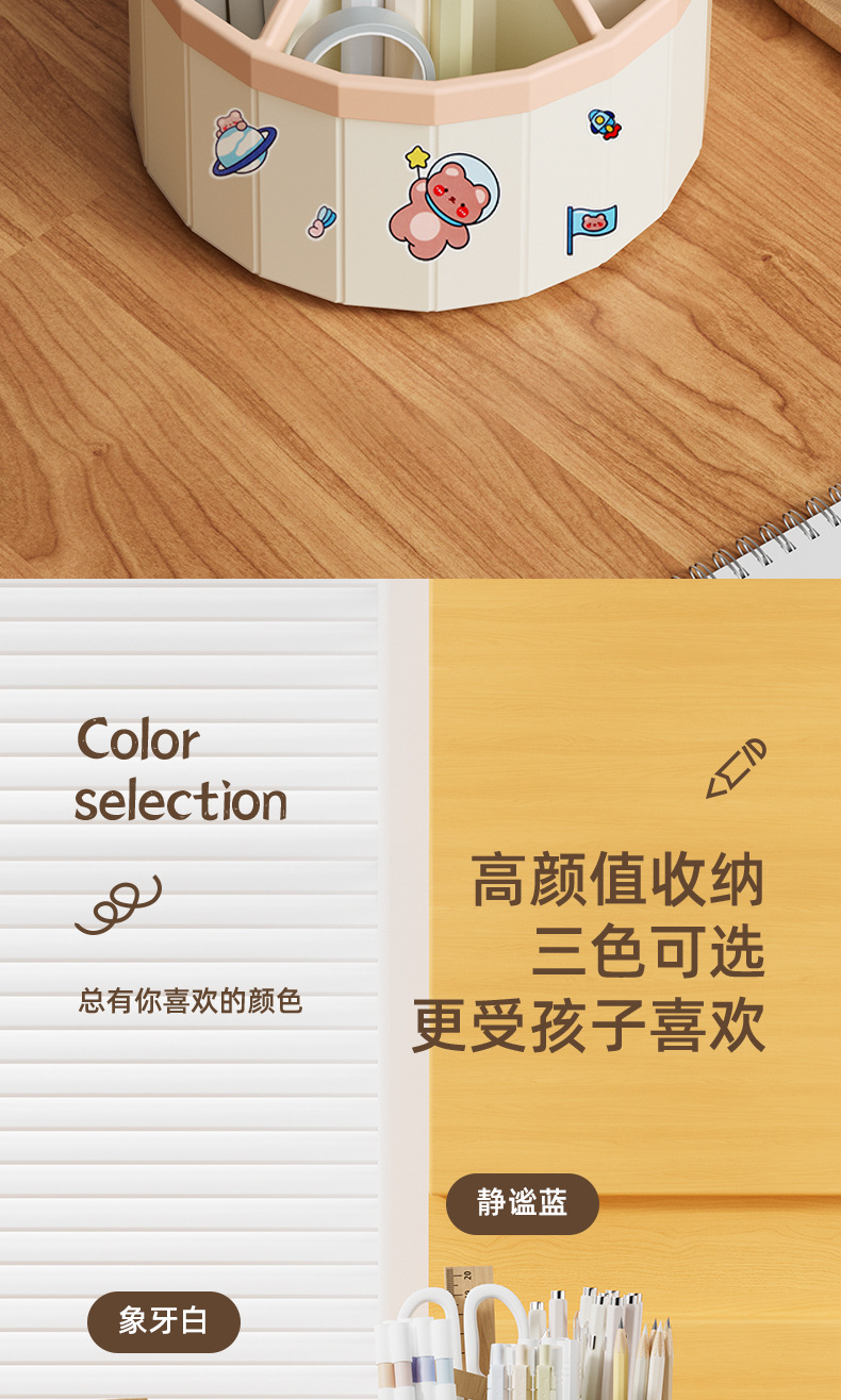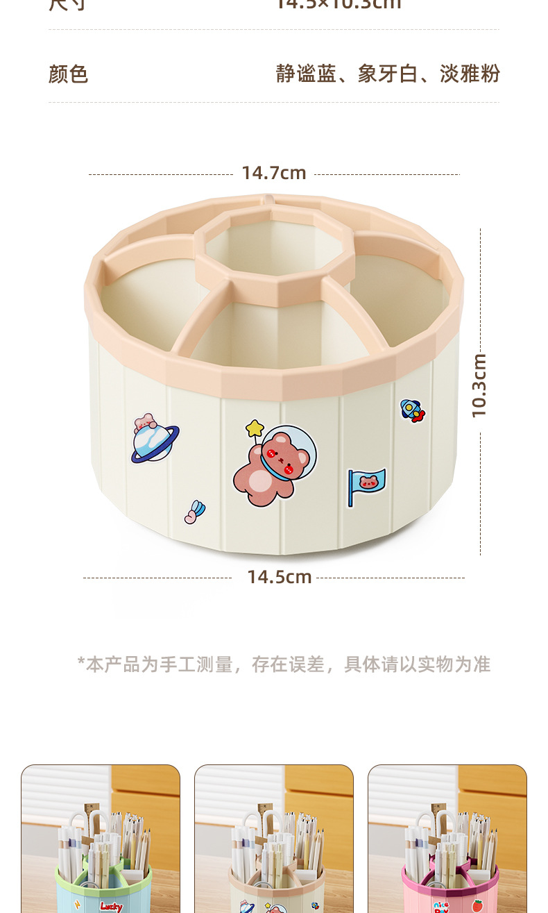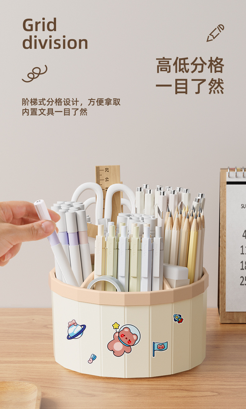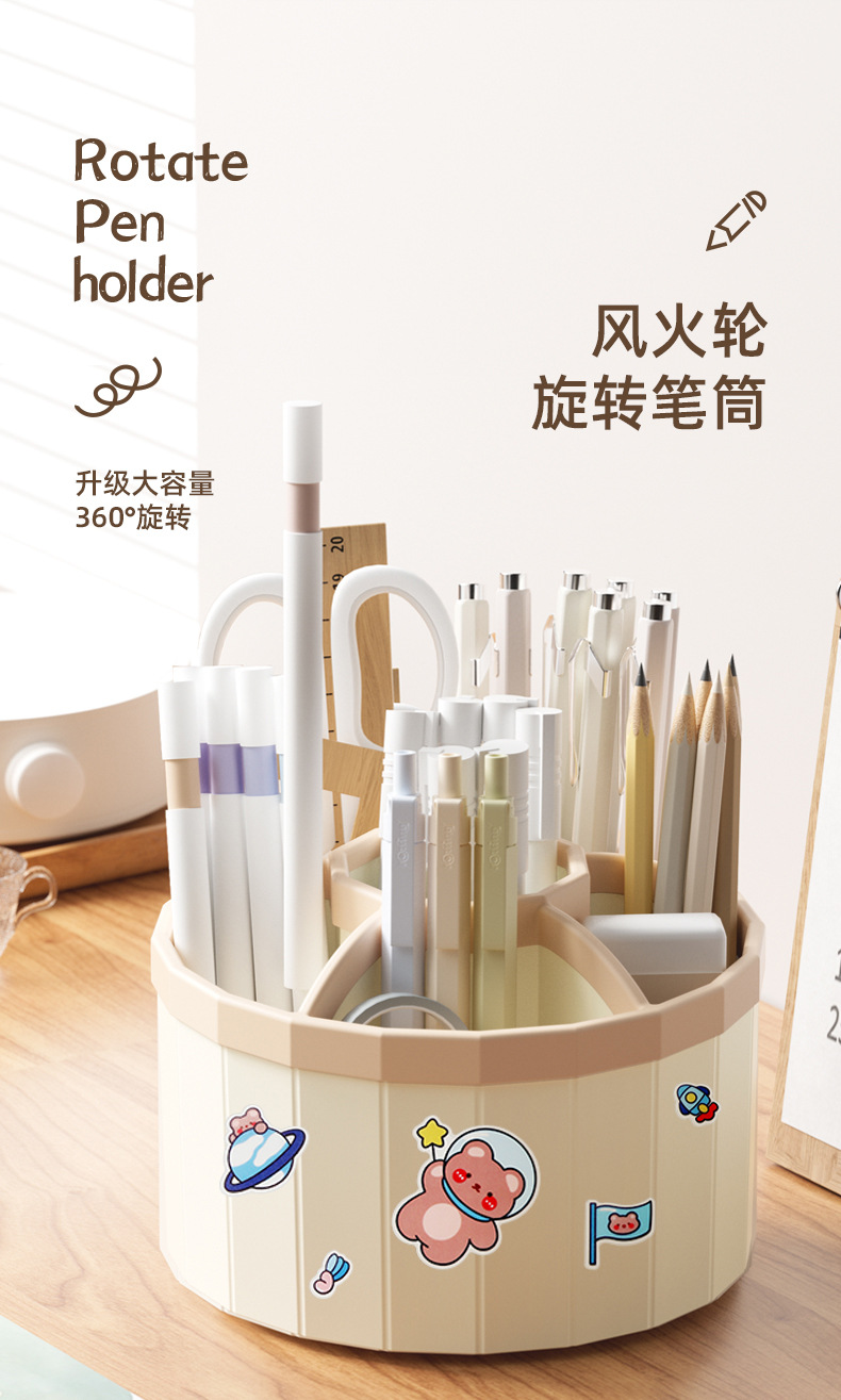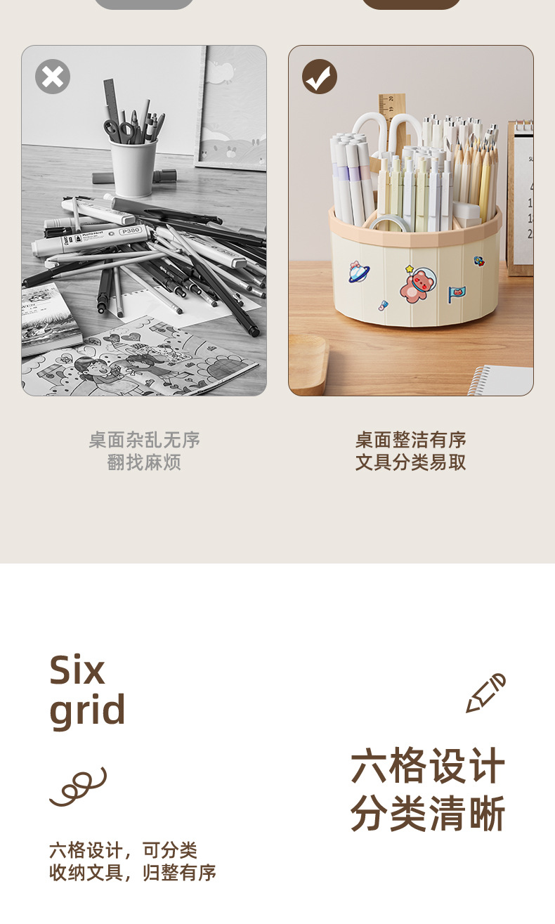 T 핫 휠 6 그리드 회전 펜 홀더 대용량 다기능 데스크탑 스토리지, 높은 모양의 메이크업 브러시 스토리지 버킷