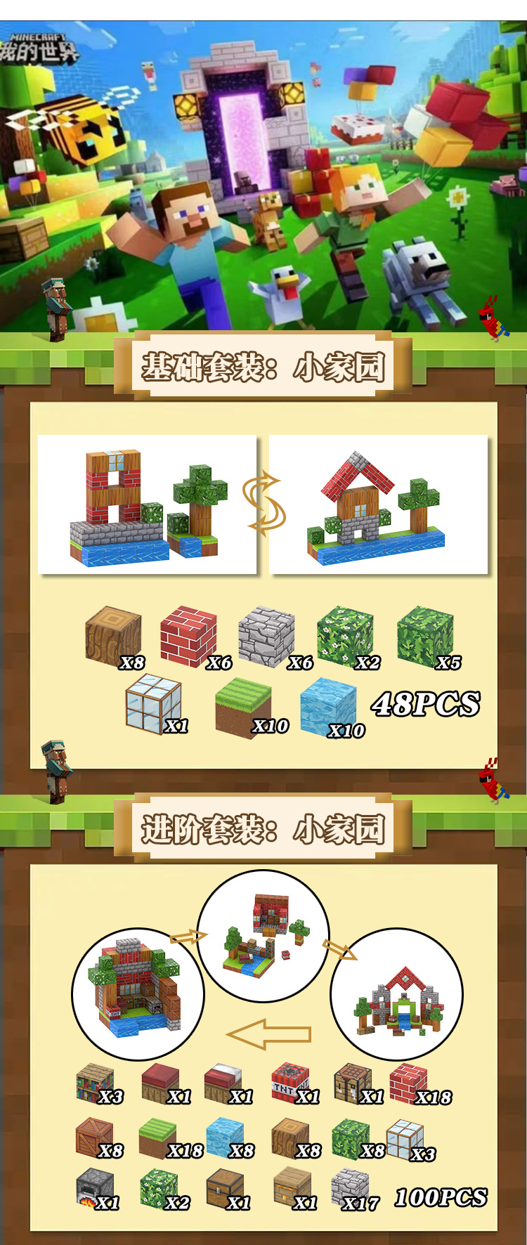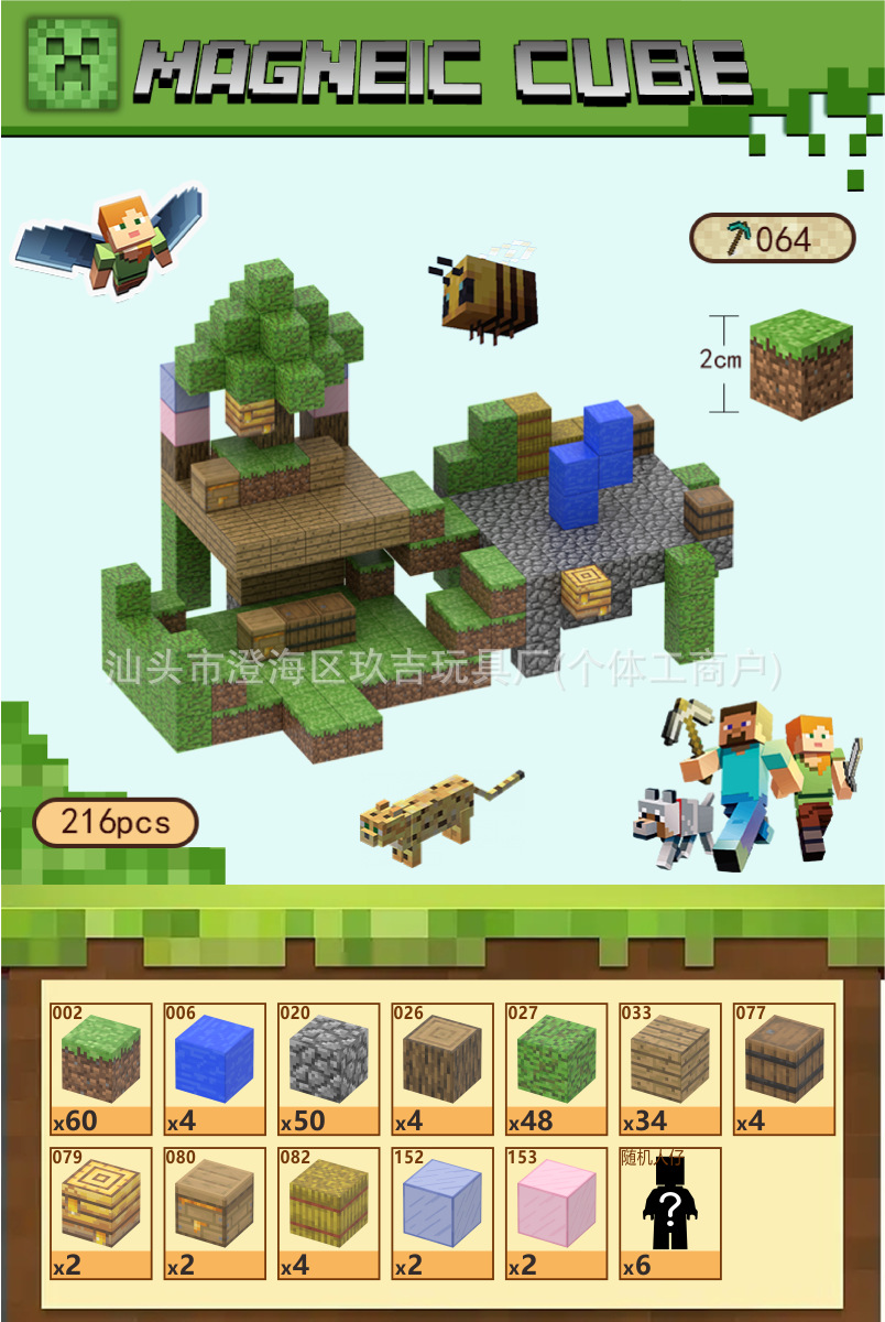 DIY 월드 가든 장난감 광산 조립 자석 블록 브릭 자석 어린이 동물 교육용 모델 선물