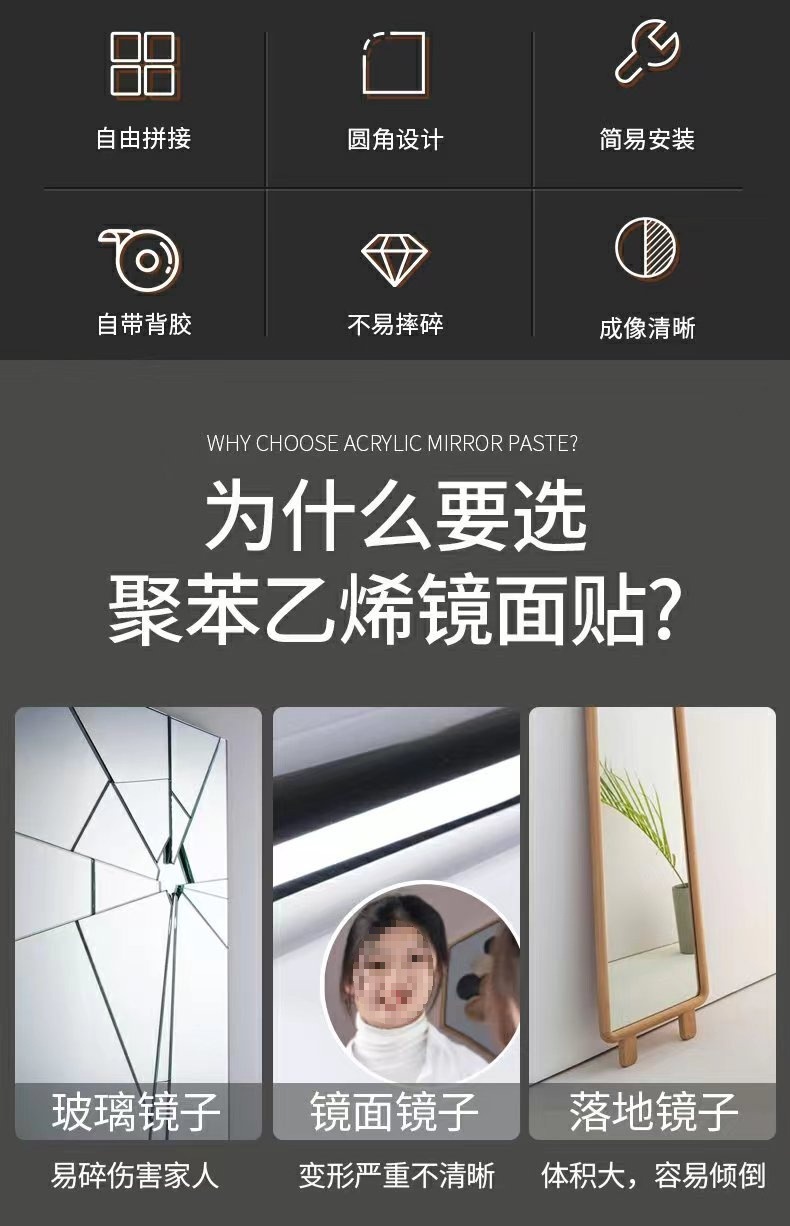 펀치없는 아크릴 자체 접착 부드러운 거울 벽 붙여 넣기 욕실 벽걸이 형 전신 거울 홈 고화질 화장품 거울스토어 가기