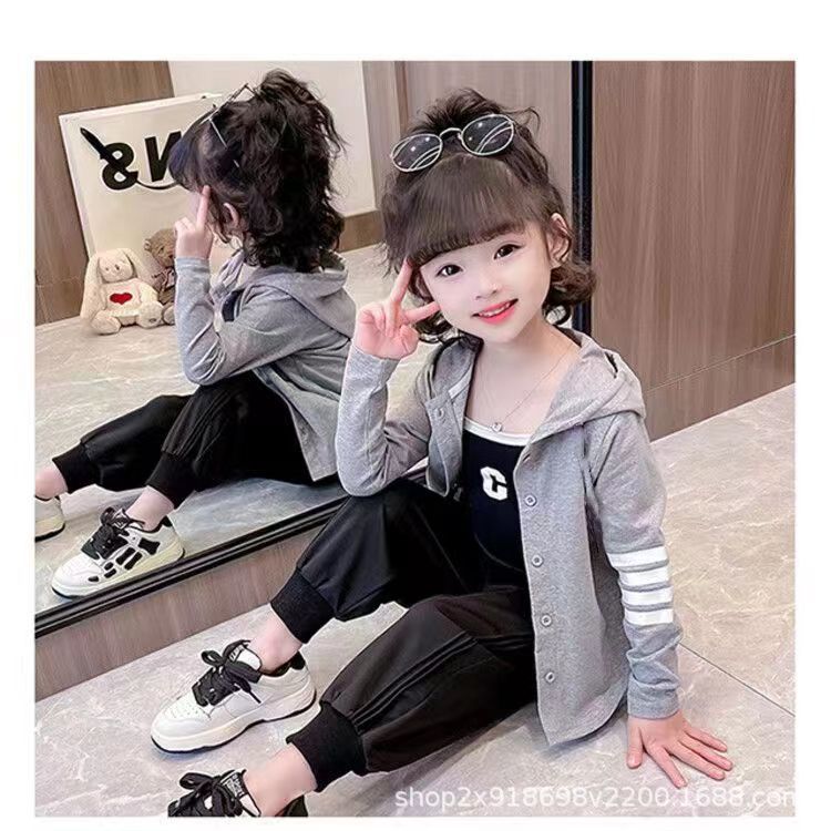 소녀 새 봄과 가을 그물 빨간 후드 카디건 베이비 캐주얼 패션 버튼 후드 카디건 코트 어린이 서양식스토어 가기
