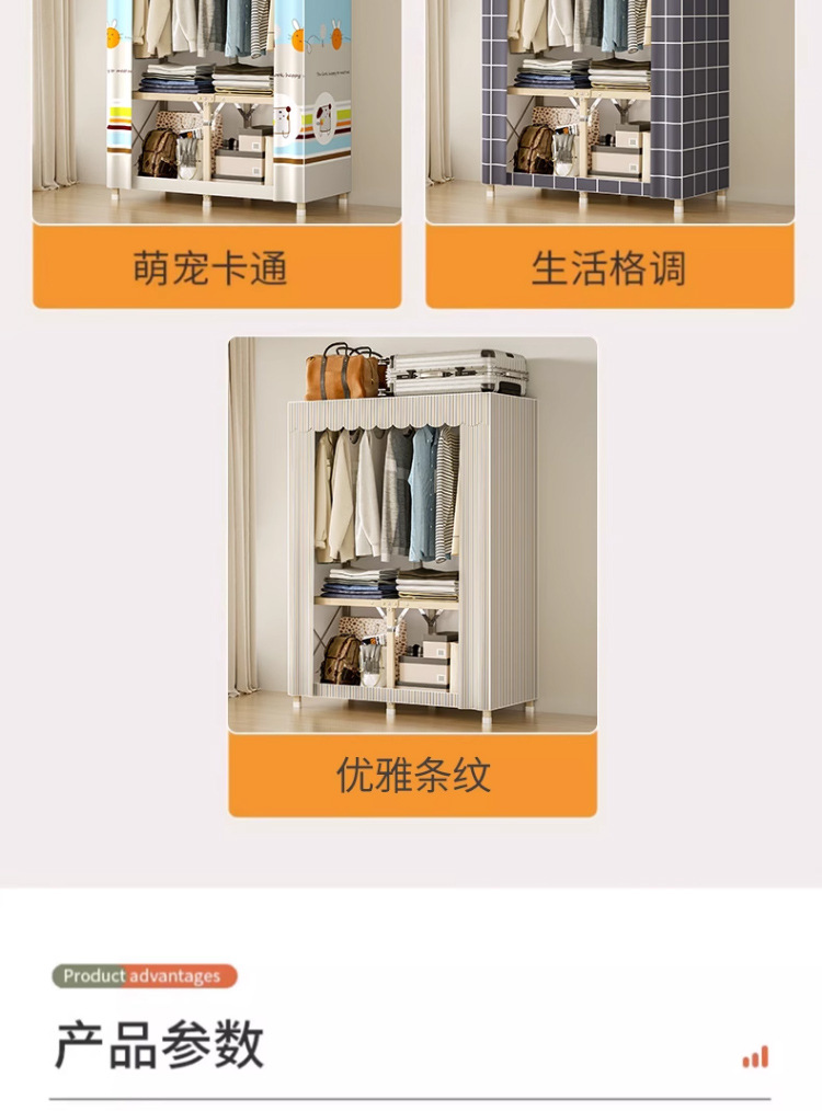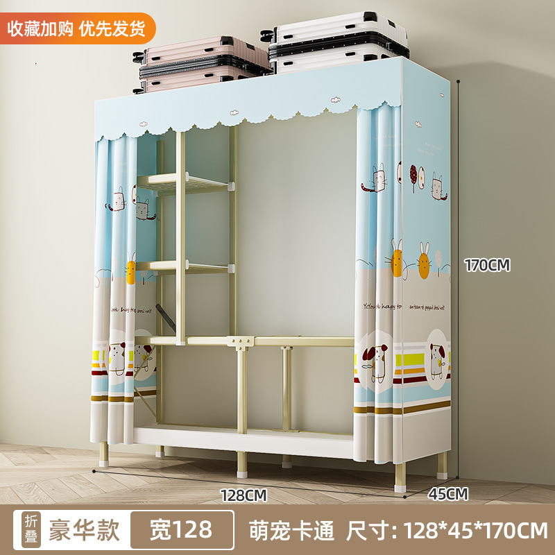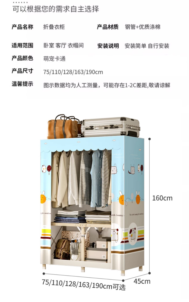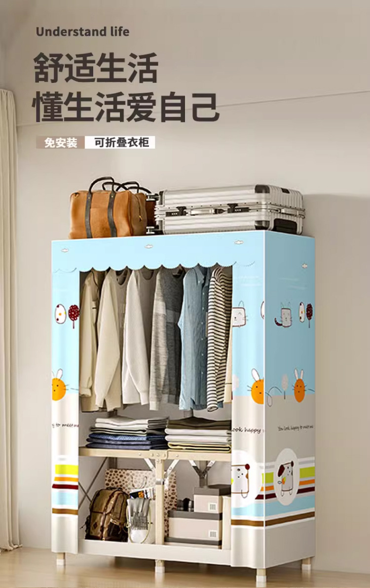 설치가 필요 없는 접이식 천 옷장 침실용 올스틸 프레임 옥스포드 천 옷장 수납 접이식 옷장 대용량스토어 가기