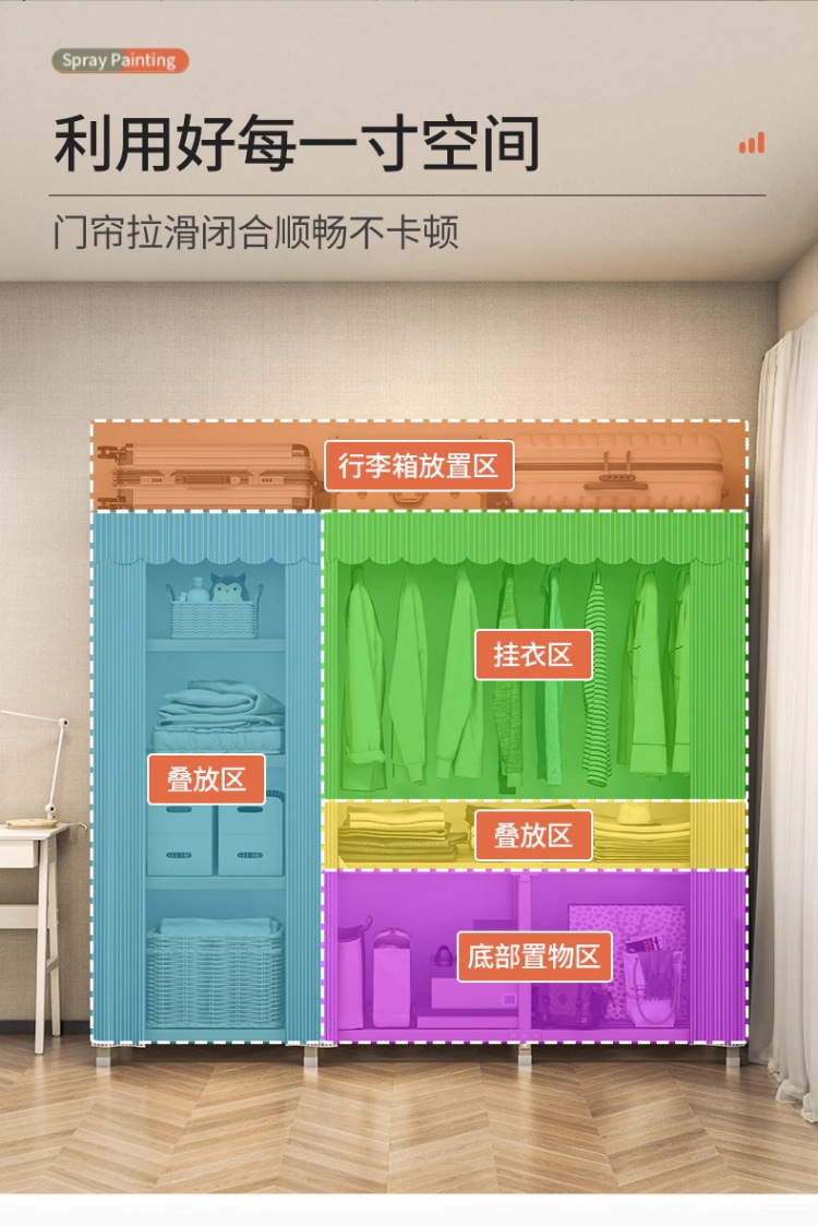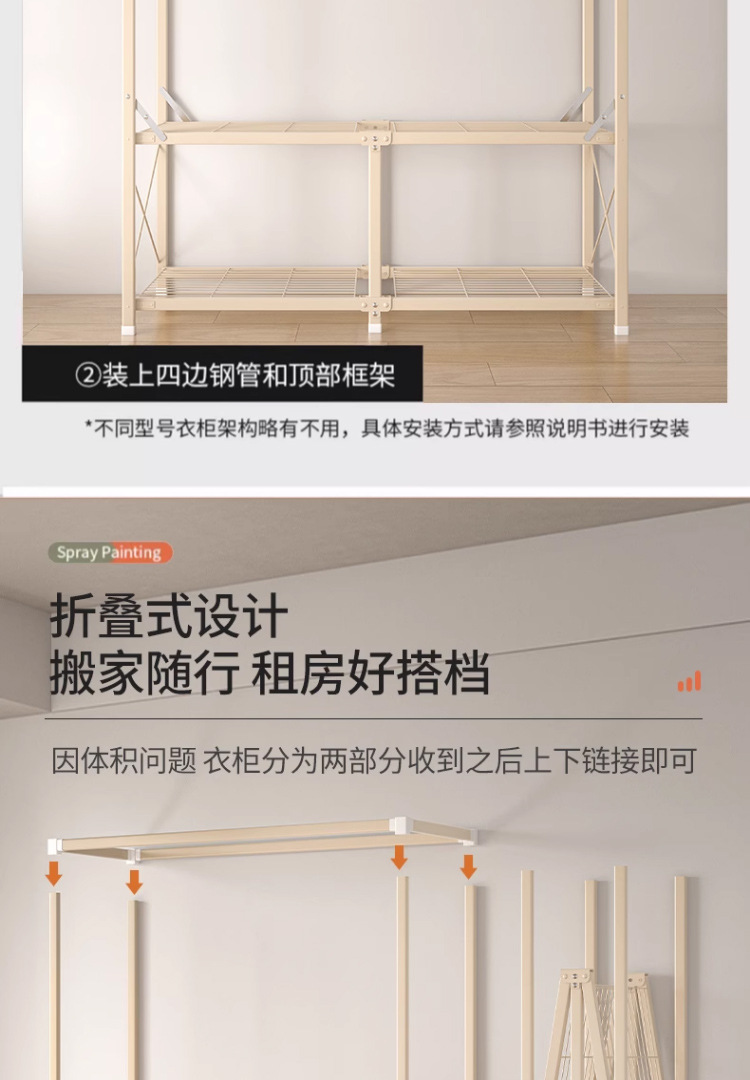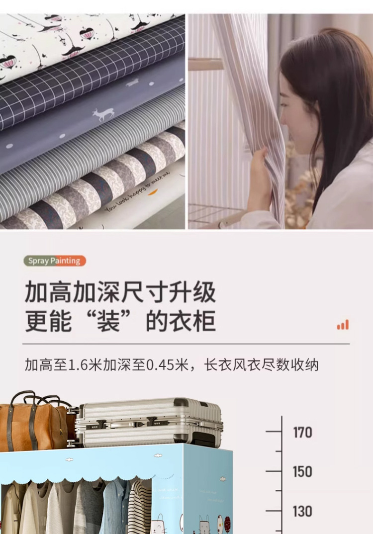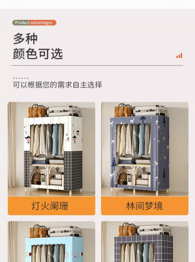 설치가 필요 없는 접이식 천 옷장 침실용 올스틸 프레임 옥스포드 천 옷장 수납 접이식 옷장 대용량스토어 가기