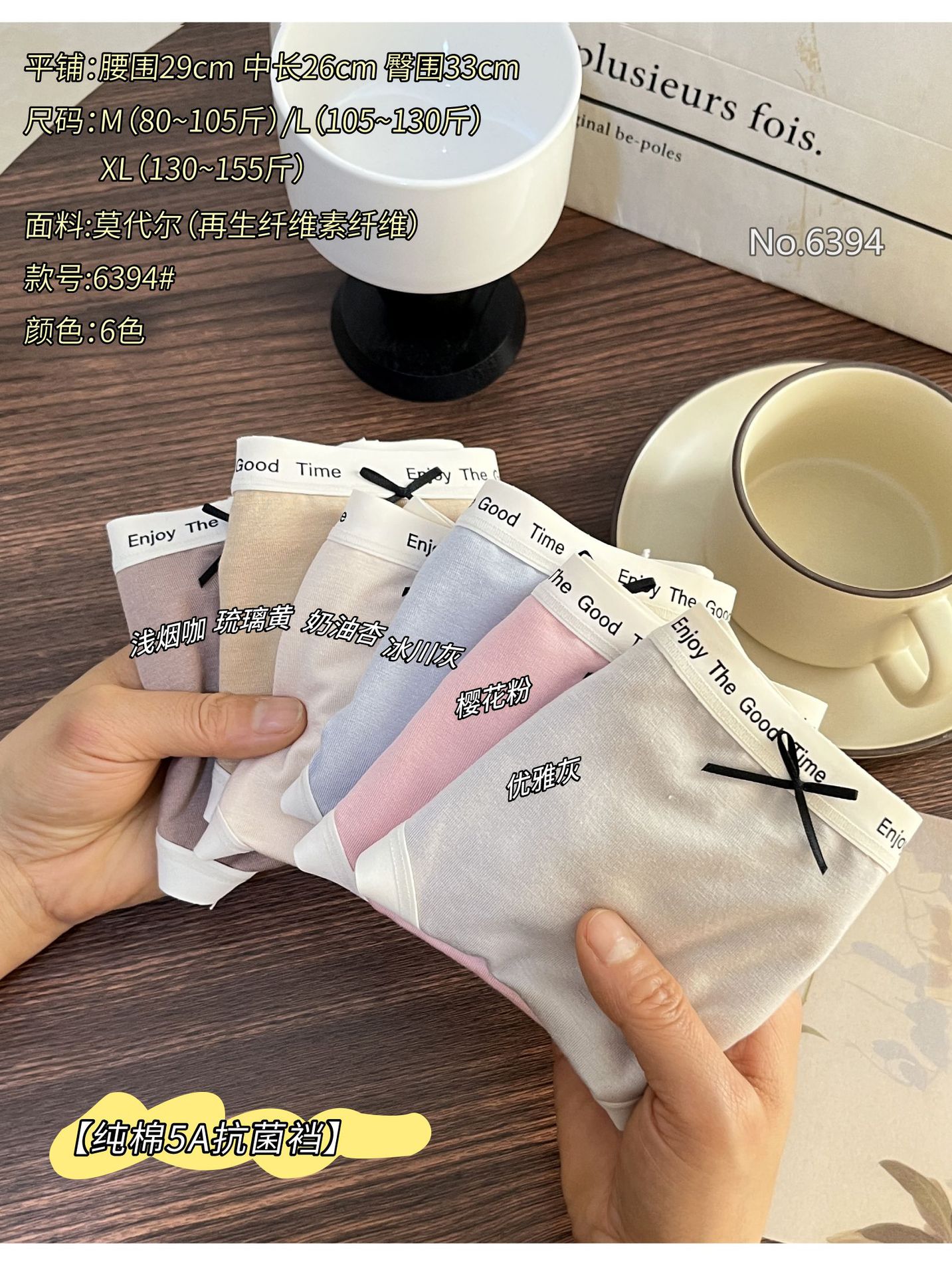 K6394 중간 허리 모달 속옷 여성의면 바닥 가랑이 5A 항균 문자 탄성 허리 소녀면 도매