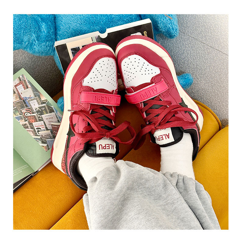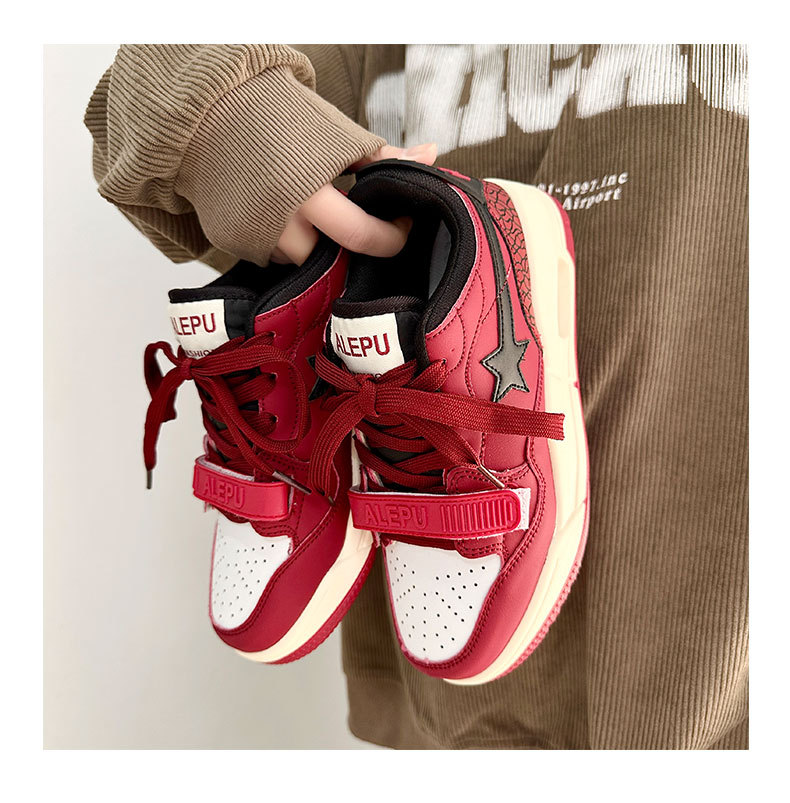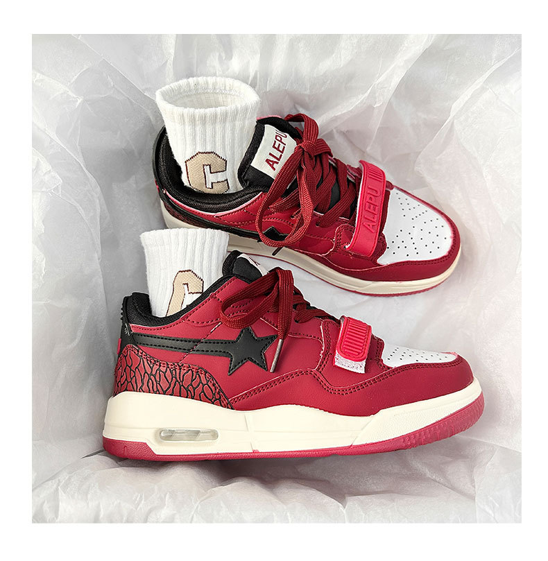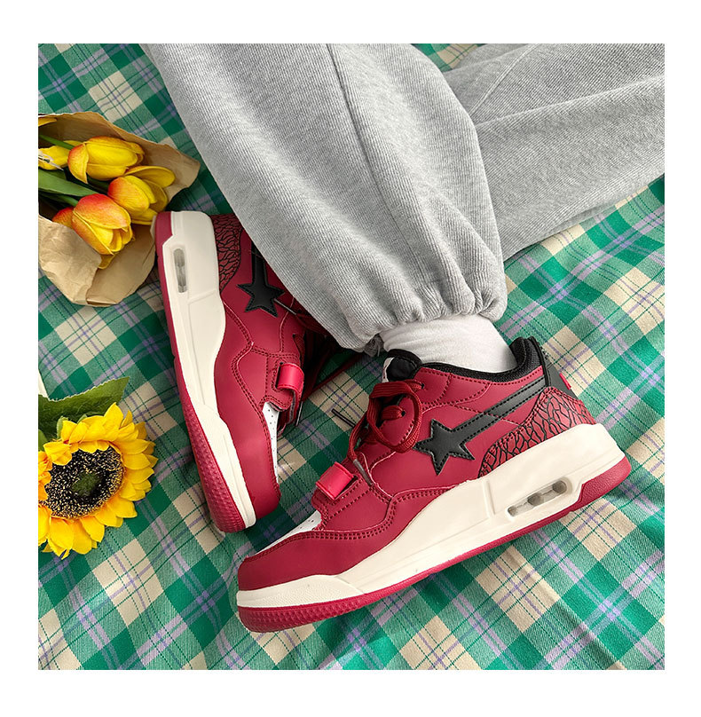전국 트렌디 레드 마일라드 에어 쿠션 스타 스니커즈, 새로운 올매치 한국식 학생 스포츠 캐주얼 슈즈 2024