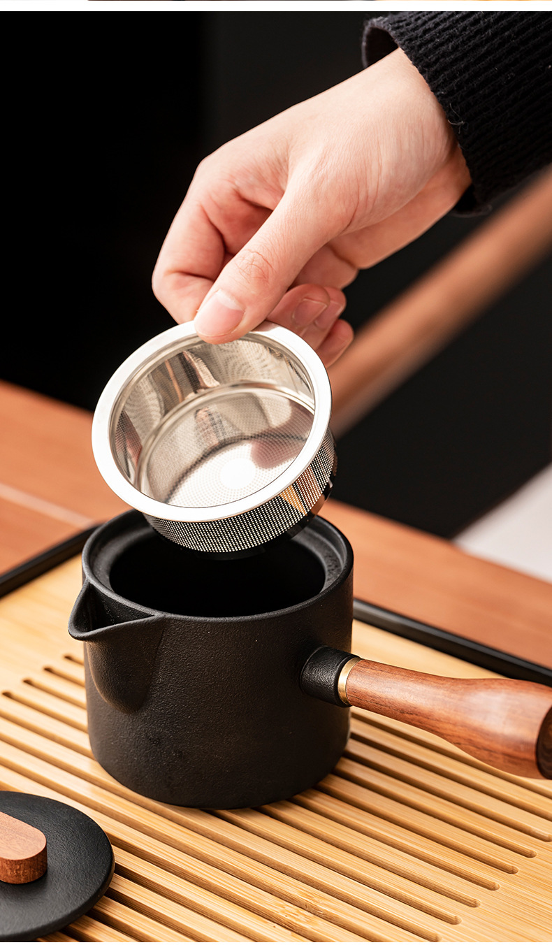 • 검은 도자기 핸들러 냄비 여행 차 세트