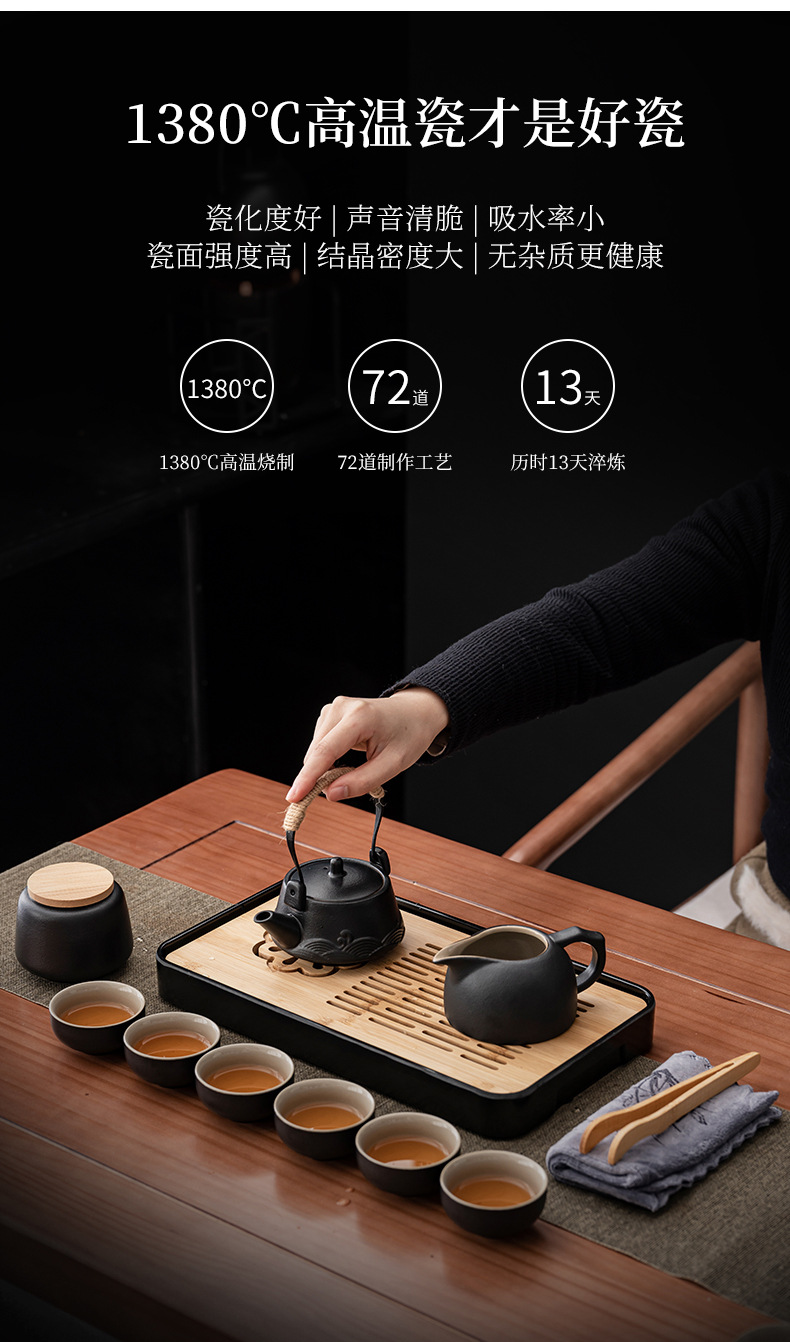 • 검은 도자기 파도 코일 냄비 여행 차 세트