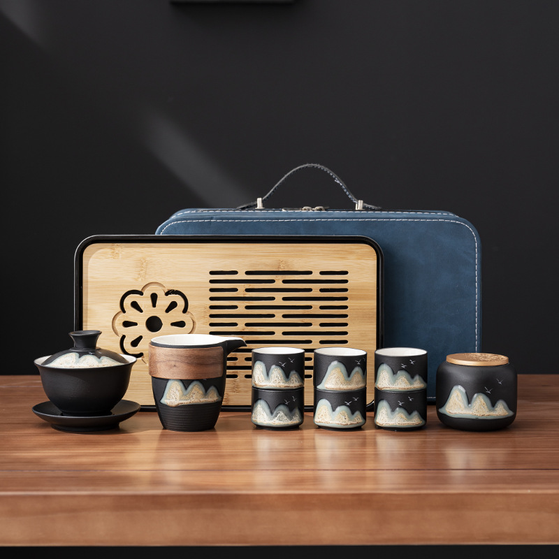 • 검은 도자기 틸더 냄비 여행 차 세트