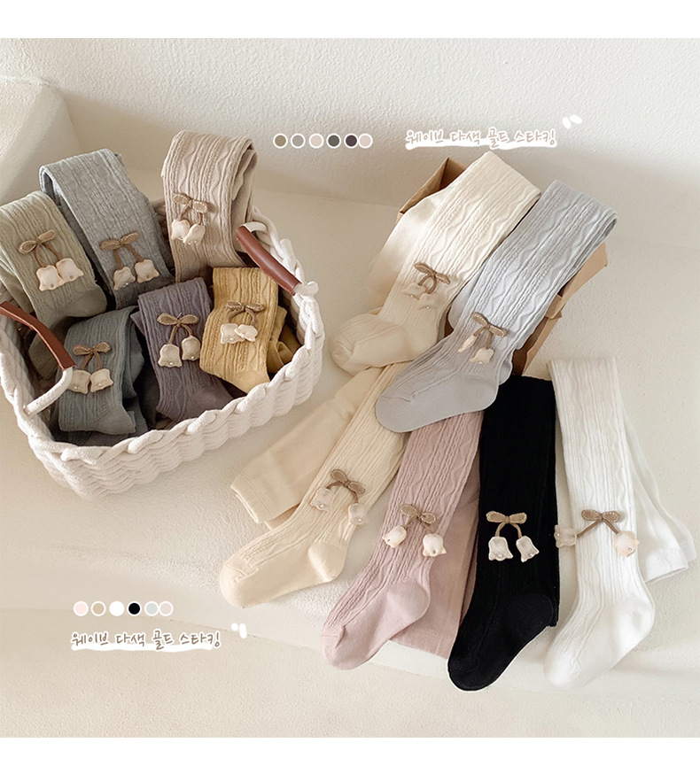 2024 여자 팬티 스타킹 봄 레깅스 한국식 단색 꽃 팬티 스타킹 소녀 레깅스 얇은 도매스토어 가기