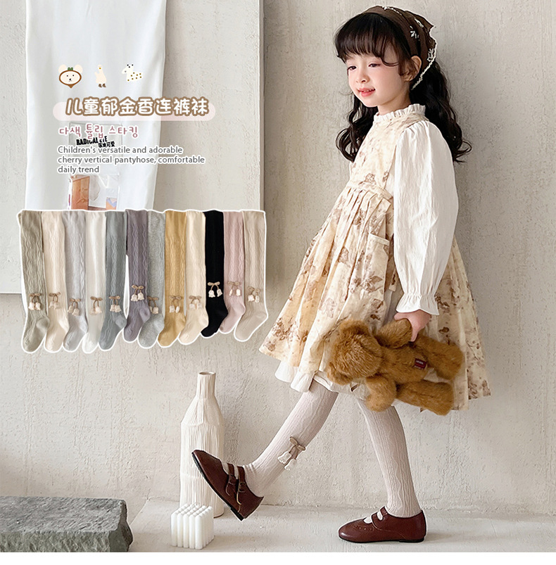 2024 여자 팬티 스타킹 봄 레깅스 한국식 단색 꽃 팬티 스타킹 소녀 레깅스 얇은 도매