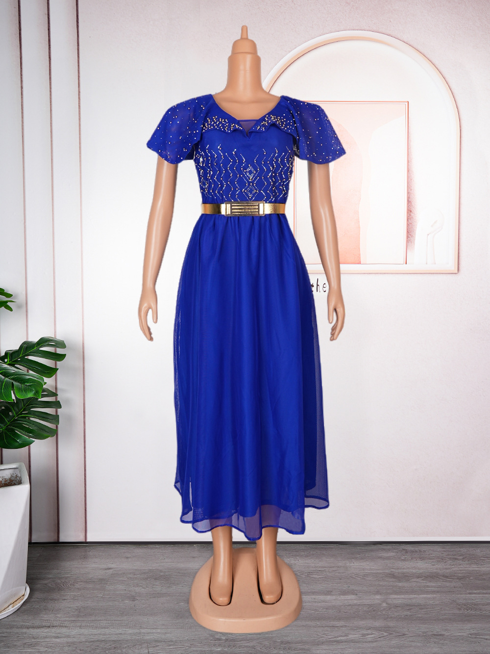 국경 간 대외 무역 여성 대형 V 넥 섹시한 힙합 스커트 아프리카 AliExpress 버블 비즈 높은 허리 원피스 벨트