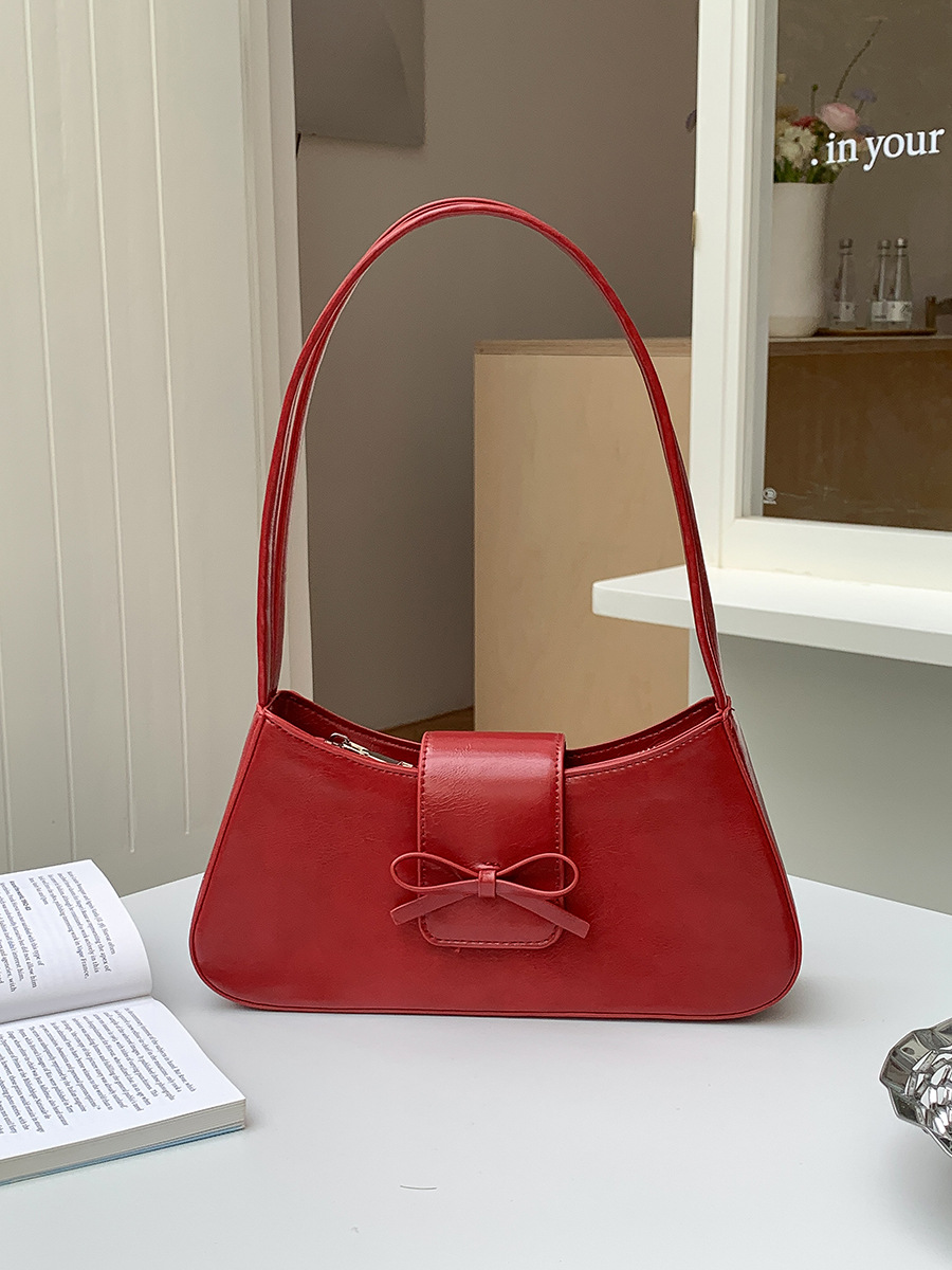 빨간 가방 여성 가방 한국어 새로운 어깨 바게트 가방 여성을위한 다목적 패션 pu 가죽 틈새 활 겨드랑이 가방