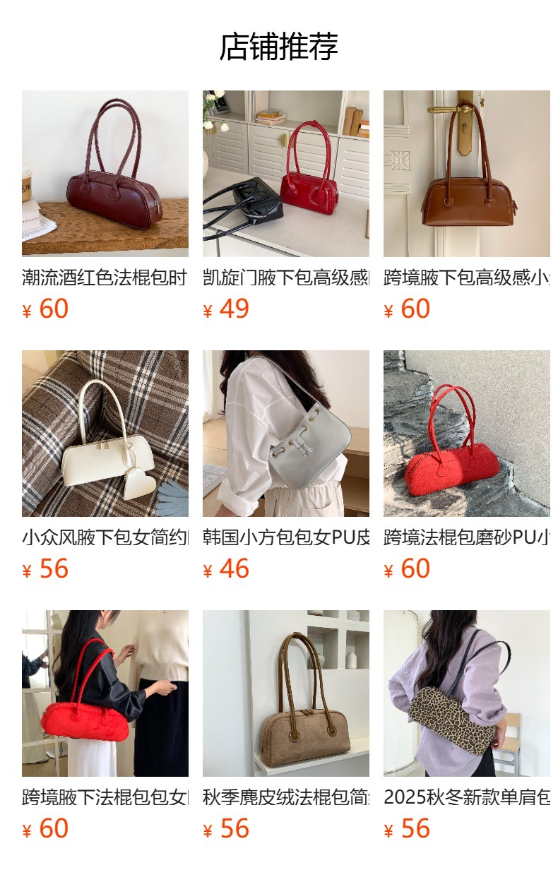 빨간 가방 여성 가방 한국어 새로운 어깨 바게트 가방 여성을위한 다목적 패션 pu 가죽 틈새 활 겨드랑이 가방스토어 가기