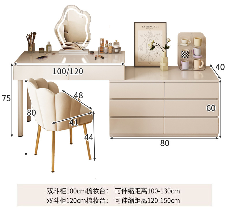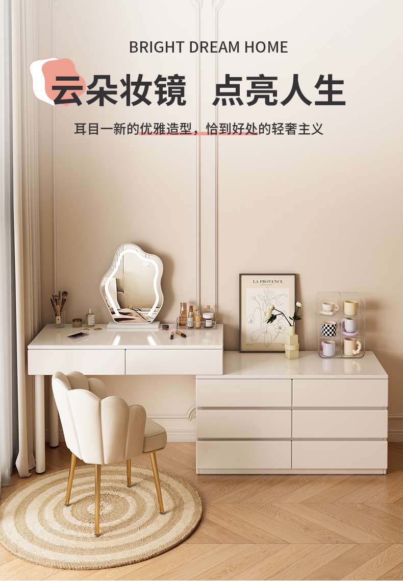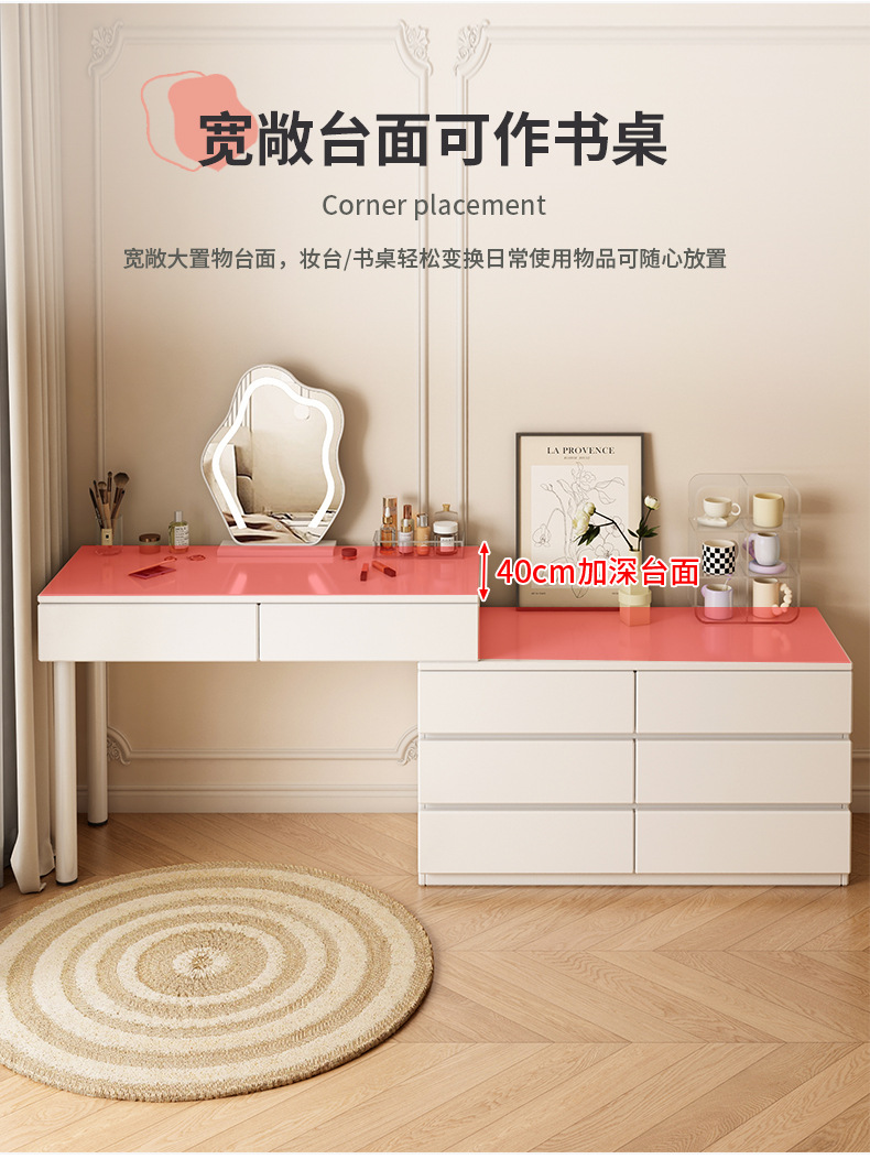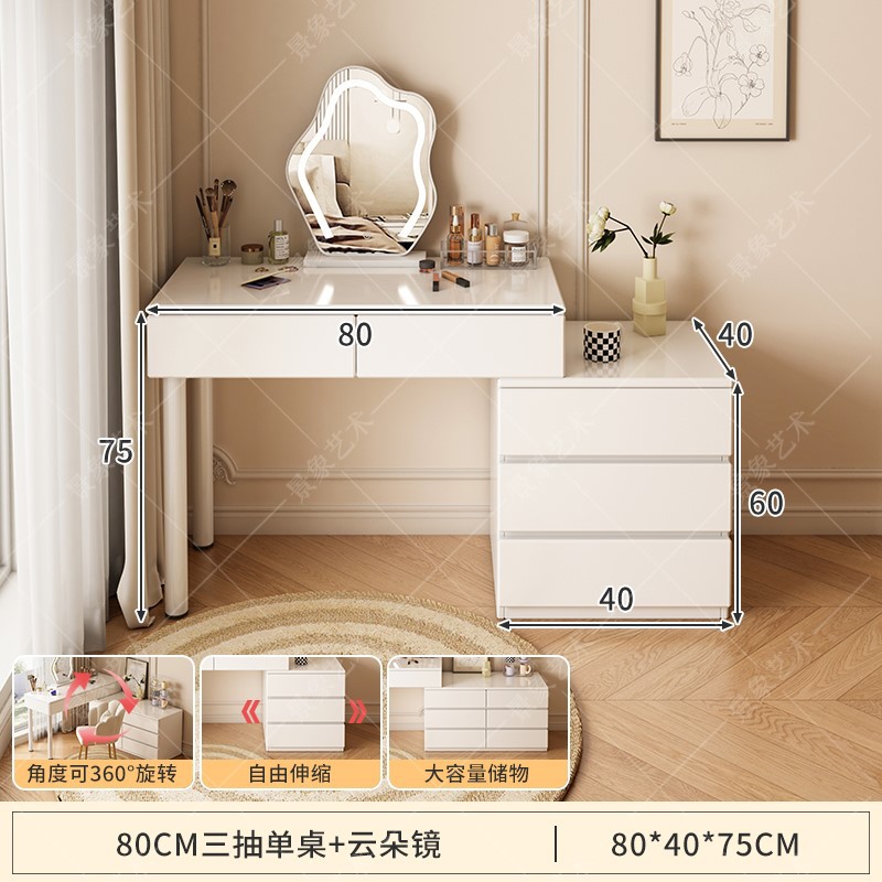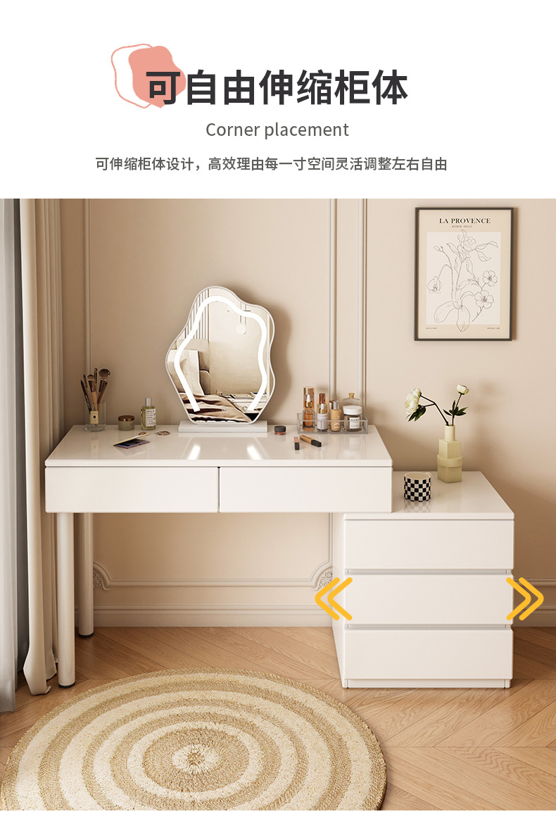 크림 스타일 드레싱 테이블 간단한 스토리지 캐비닛 침대 옆 테이블 통합 텔레스코픽 코너 책상 침대 옆 버킷 캐비닛 드레싱 테이블스토어 가기