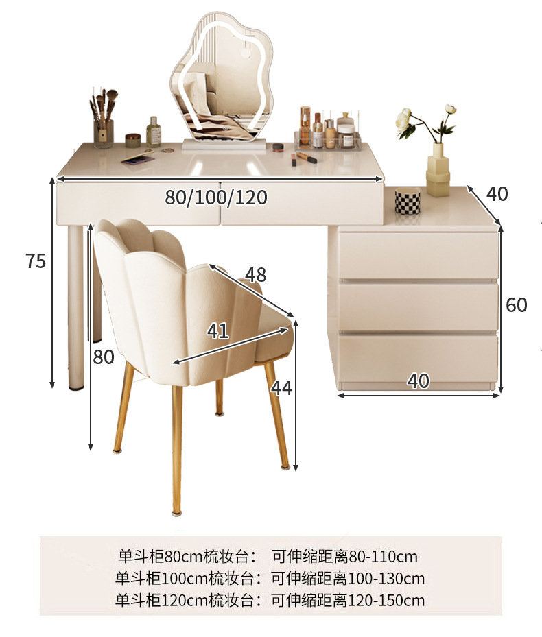 크림 스타일 드레싱 테이블 간단한 스토리지 캐비닛 침대 옆 테이블 통합 텔레스코픽 코너 책상 침대 옆 버킷 캐비닛 드레싱 테이블