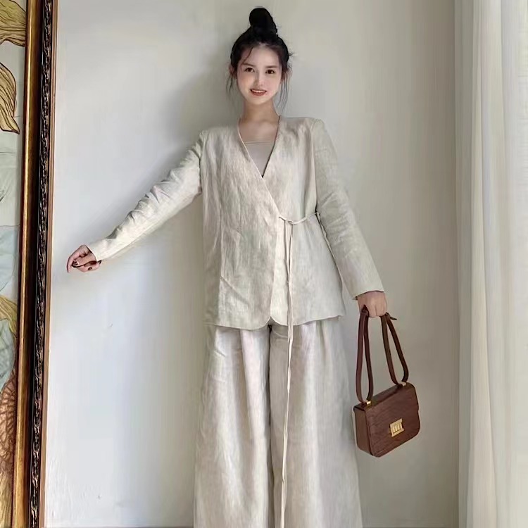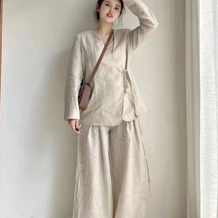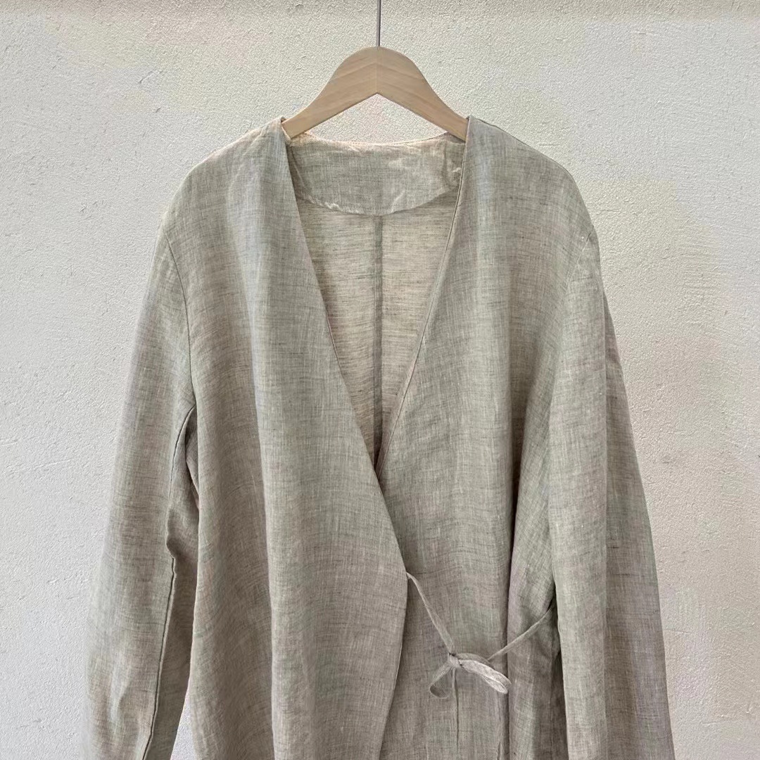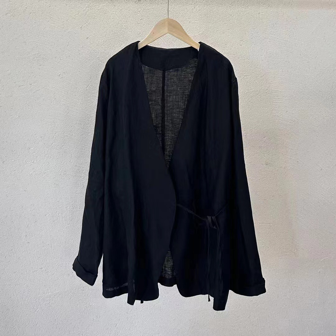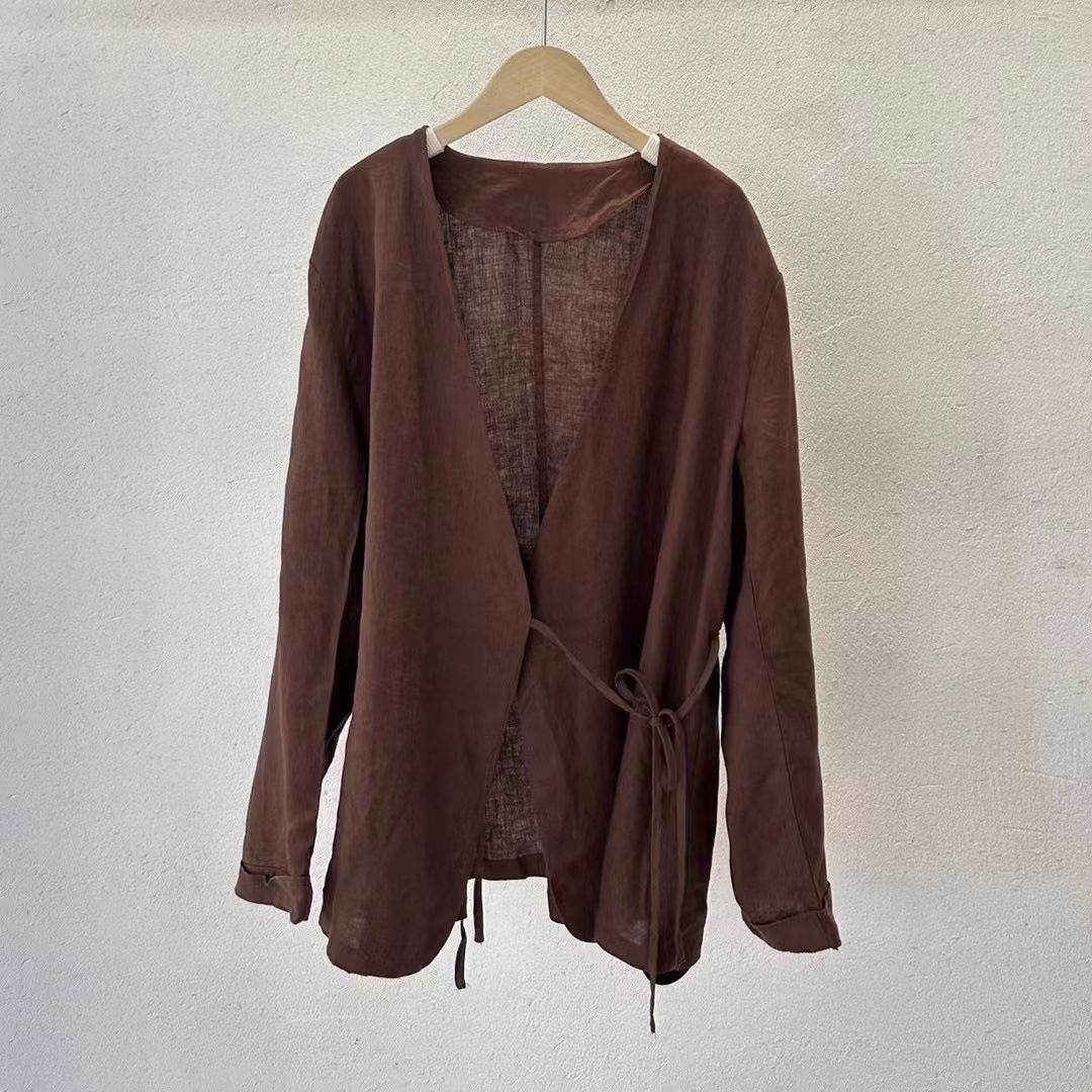 카디건 깊은 V 단색 레이스 업 긴 소매 예술적 복고풍 스타일 카디건 여성의 다재다능한 봄 새 린넨 셔츠스토어 가기