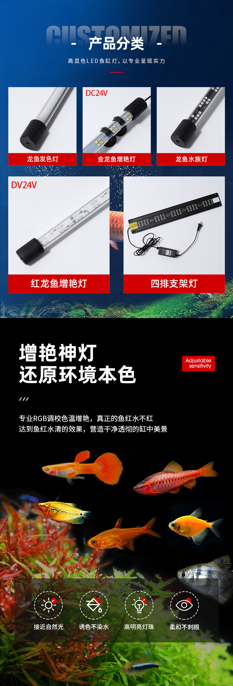 수족관 5050RBG 물고기 탱크 램프 슈퍼 밝은 황금 용 레드 드래곤 아랫 램프 방수 용 물고기 램프 특수 램프 조명 램프