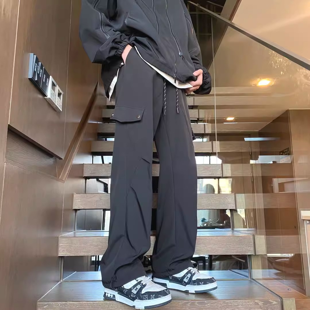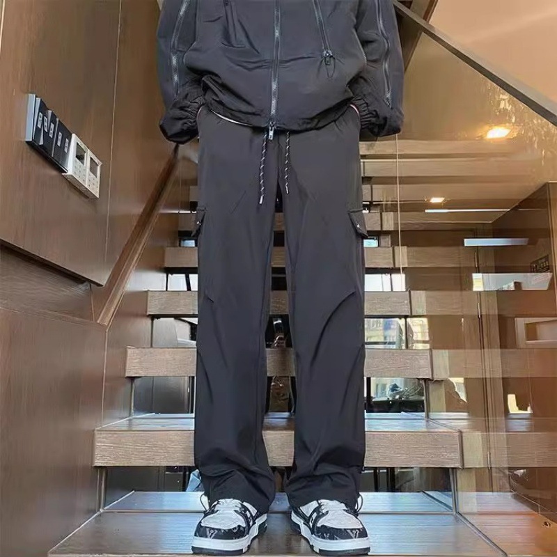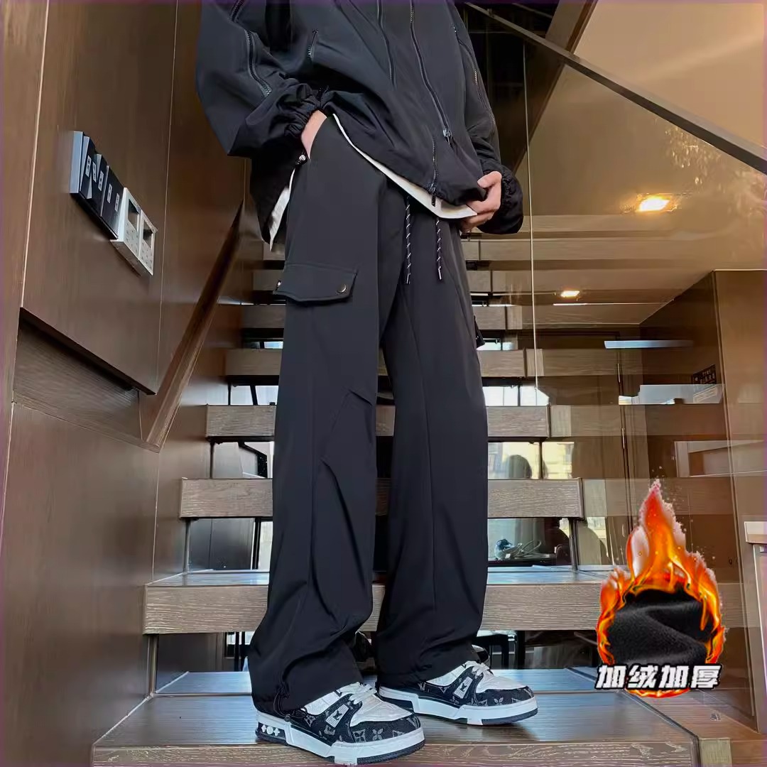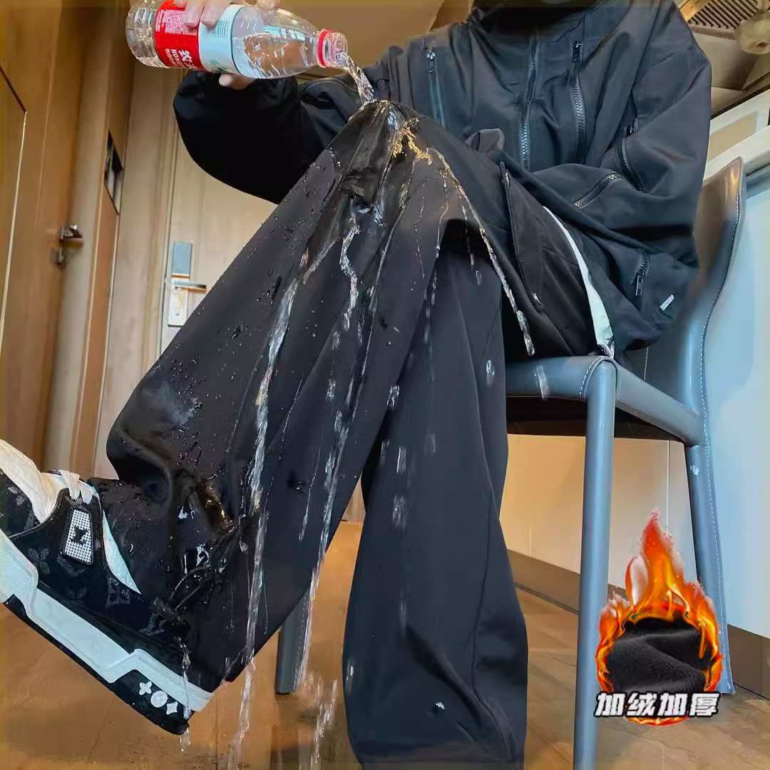 남자 겨울 기모 따뜻한 방수 방풍 야외 하이킹 바지 미국 하이 스트리트 블랙 스트레이트 바지스토어 가기