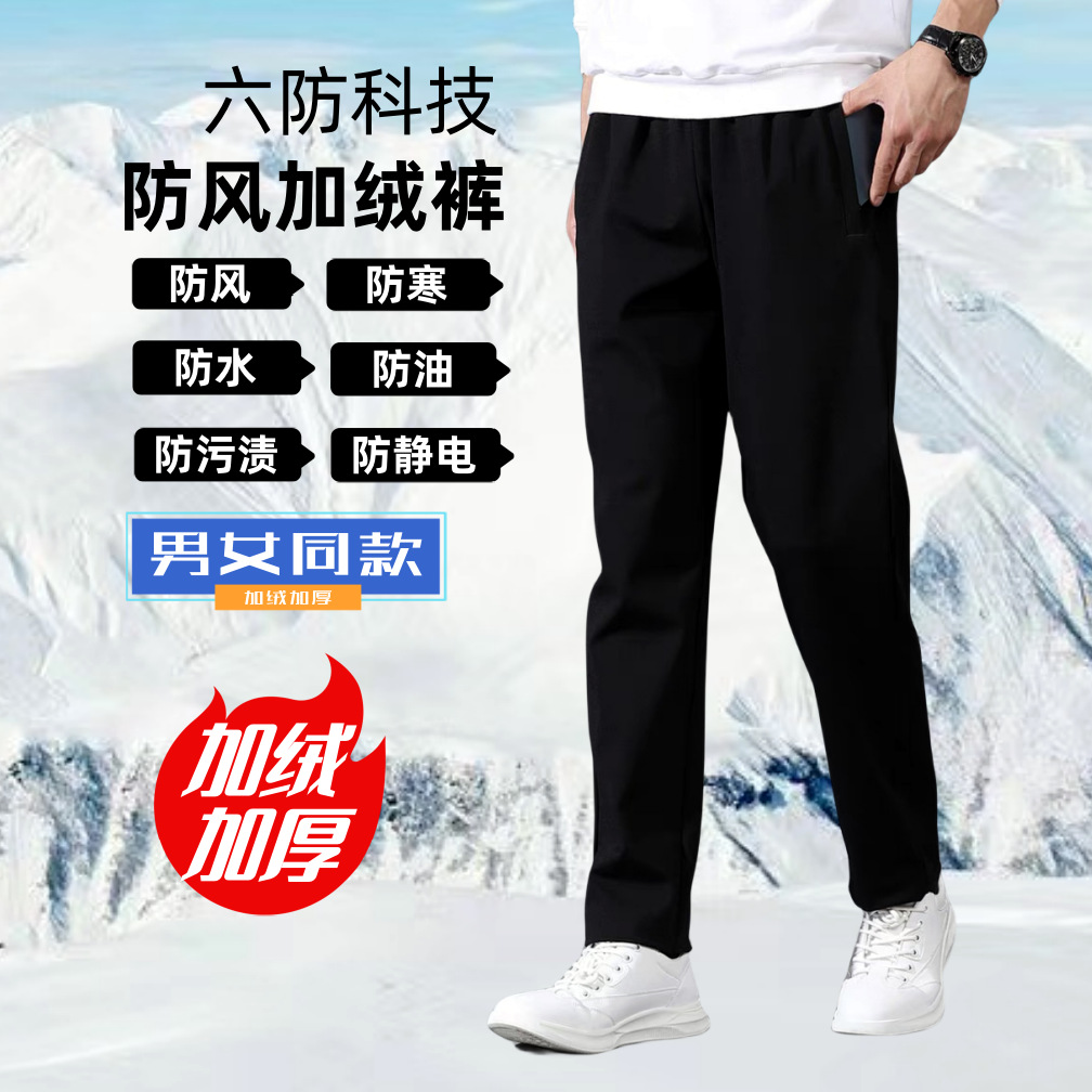 가을과 겨울 기모 6 가지 방풍 바지 따뜻한 바지 남성 및 여성 두꺼운 방풍 코튼 바지 방수 방한 따뜻한 캐주얼 바지
