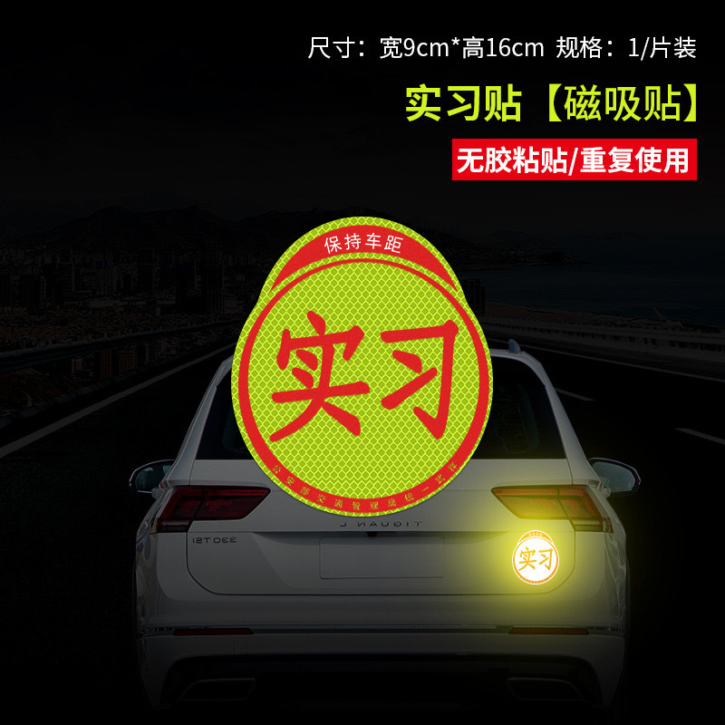 인턴쉽 자동차 스티커 도로 반사 로고 자동차 마그네틱 스티커 재미있는 창조적 인 자동차 마그네틱 여성 드라이버 스티커