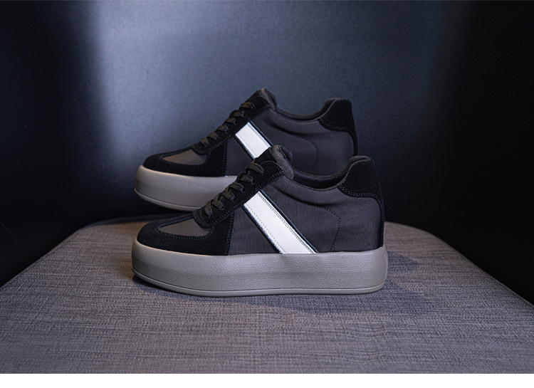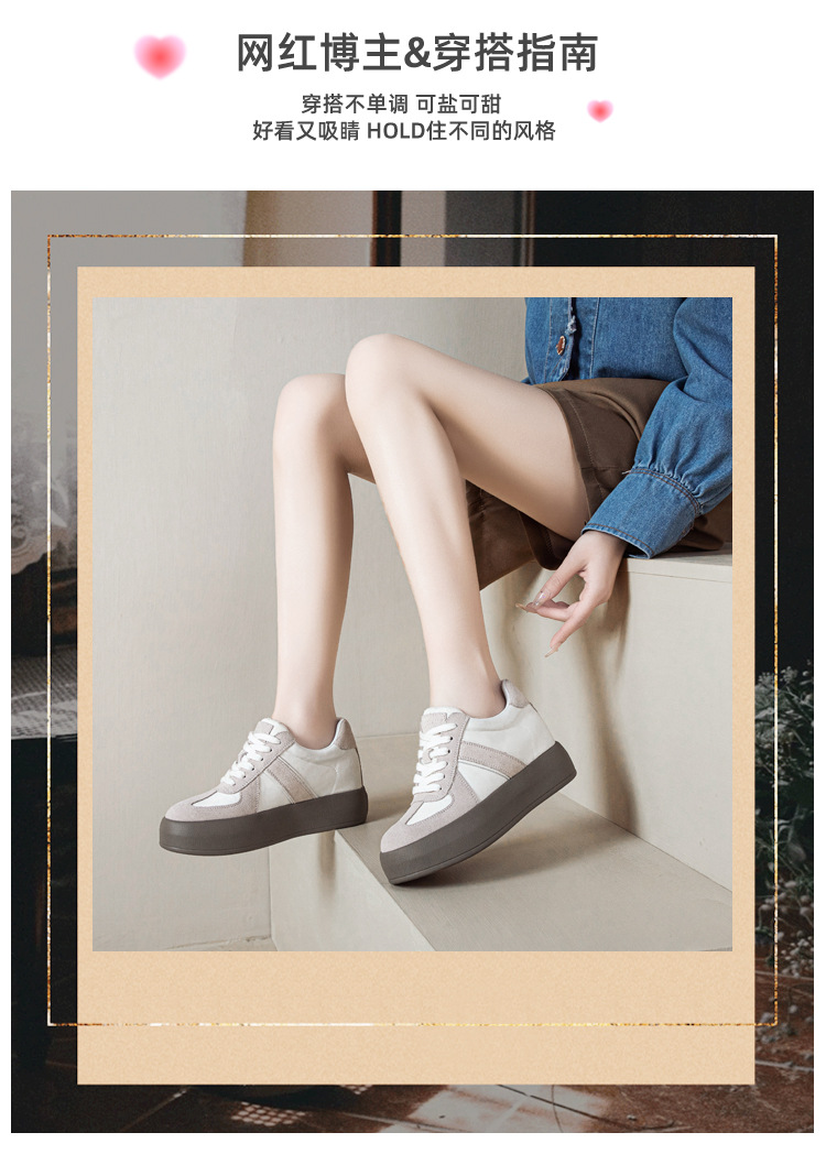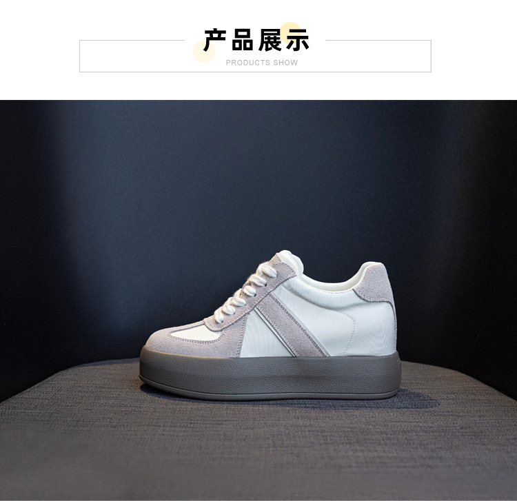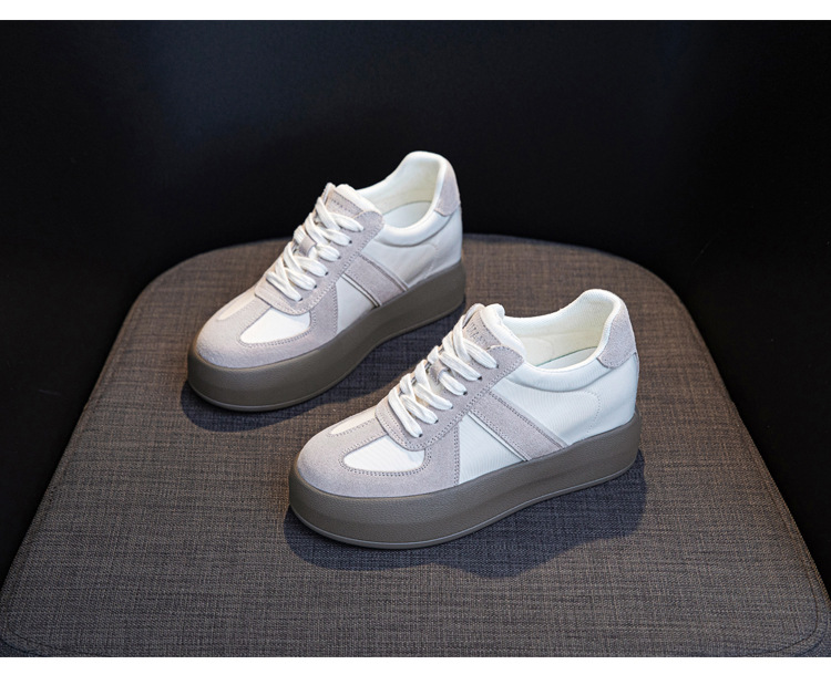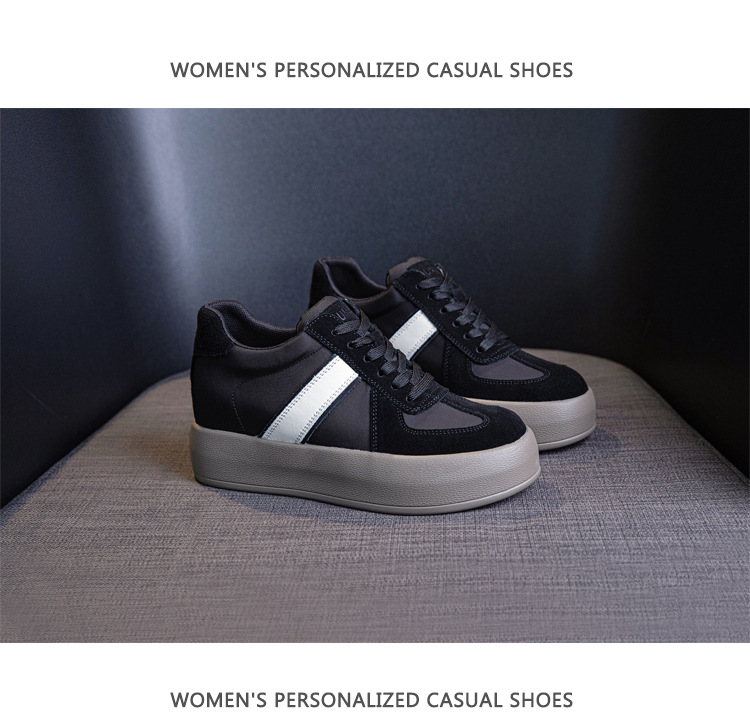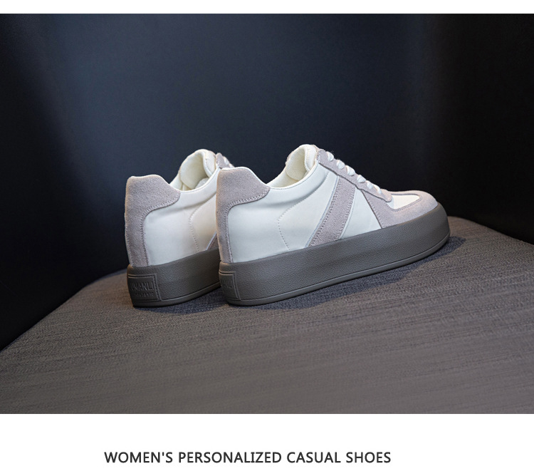 세련된 올 매치 독일 훈련 신발 대비 색상 여성의 두꺼운 바닥 편안한 2024 봄 새로운 스타일의 머핀 숨겨진 높이 복고풍 여성 신발스토어 가기