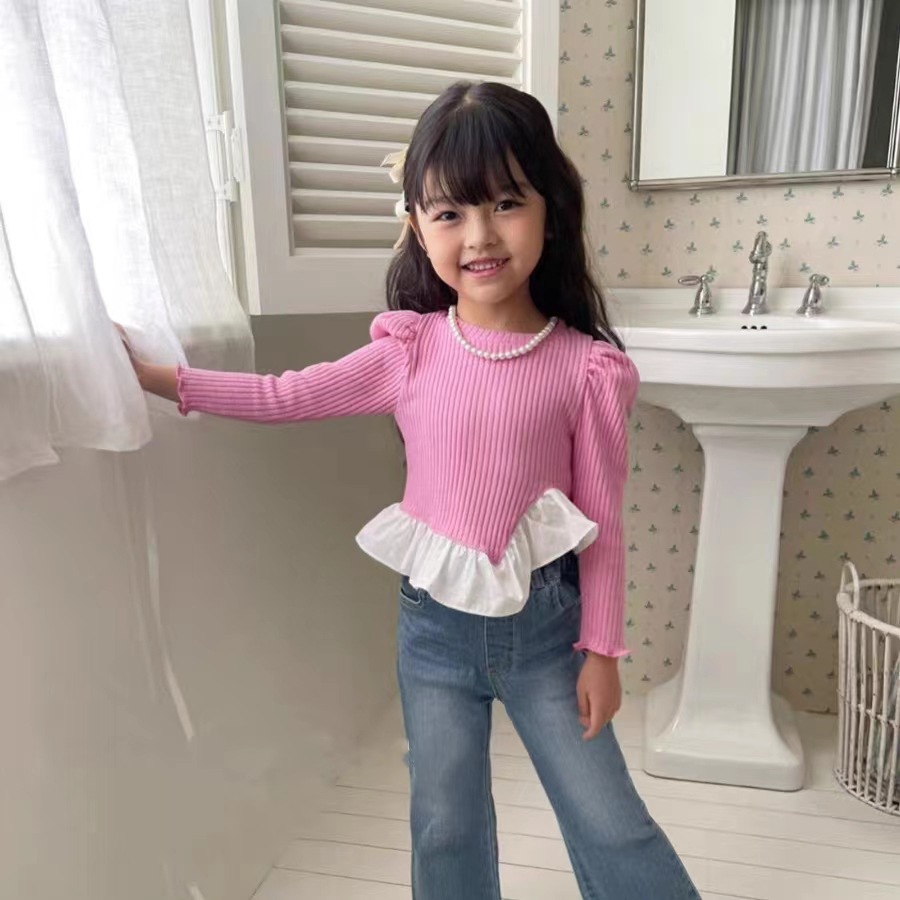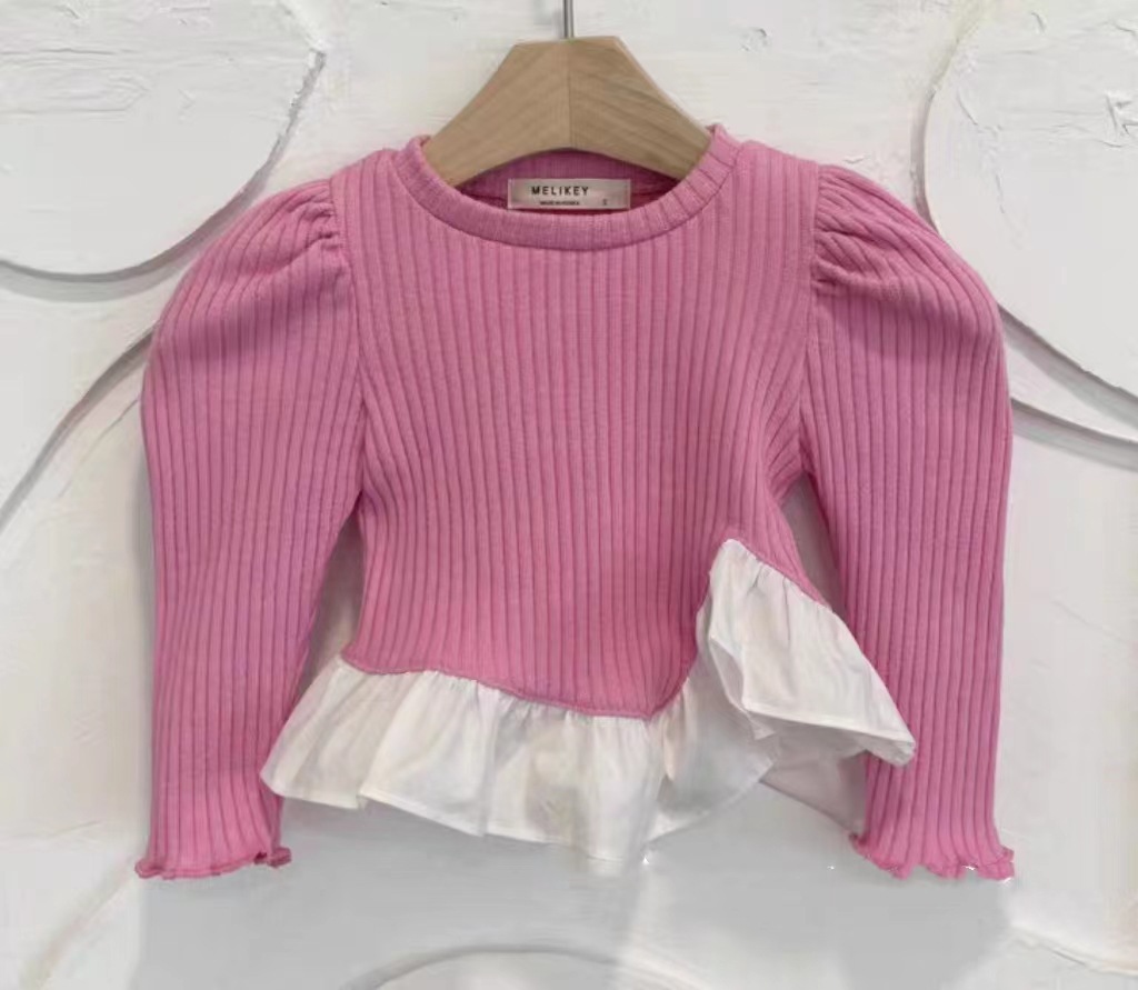 2025 새로운 봄, 가을 여자 면화 탄성 핏 패턴 프릴 바닥 셔츠 티셔츠스토어 가기