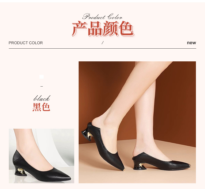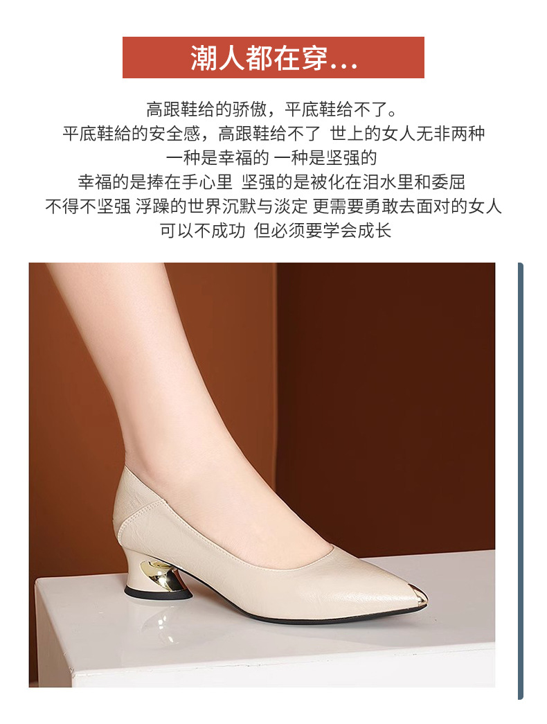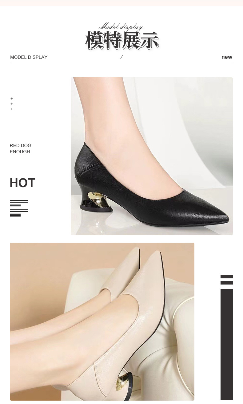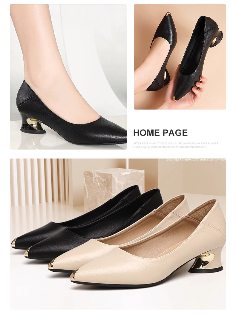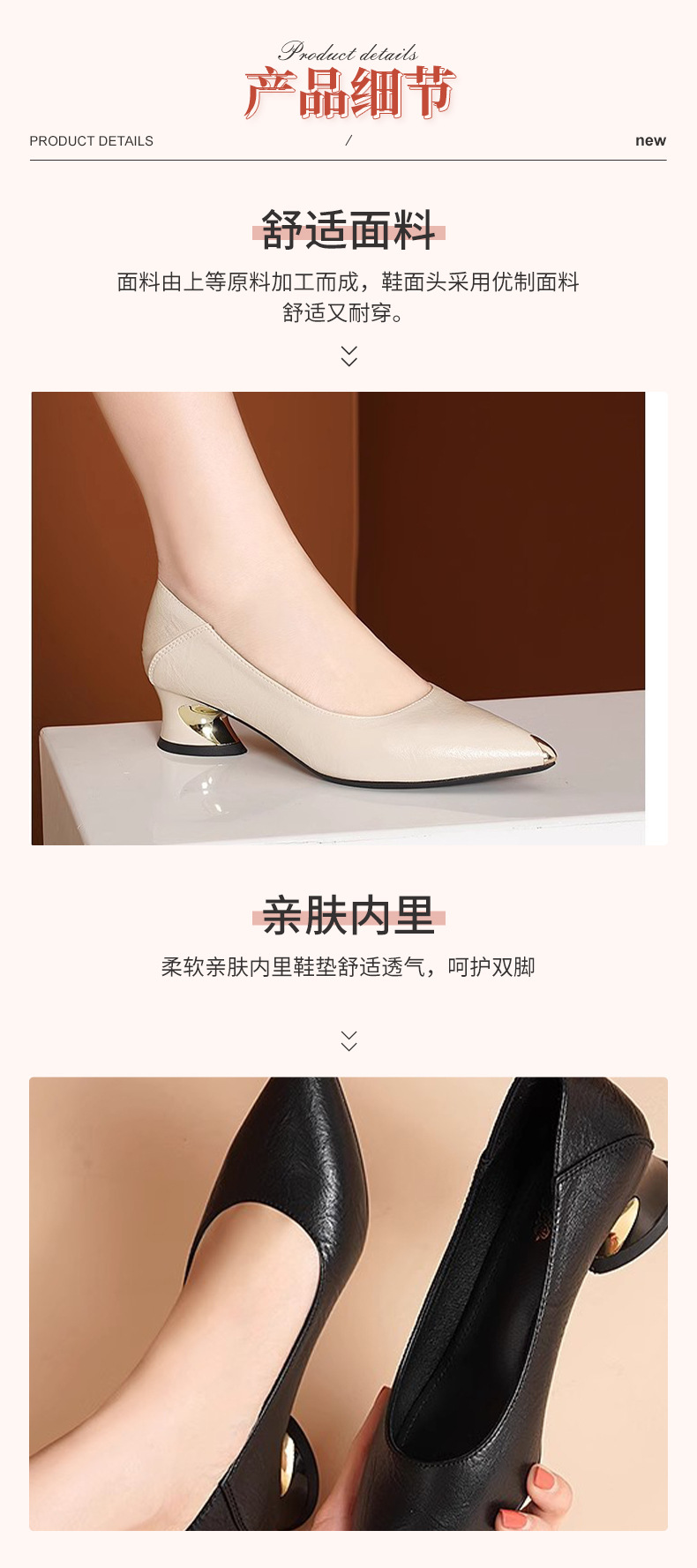 진짜 부드러운 가죽 여성 신발 2024 가을 새로운 포인팅 얕은 입 편안한 가죽 신발 올 매치 미들 힐 두꺼운 싱글 레이어 신발 여성 신발스토어 가기