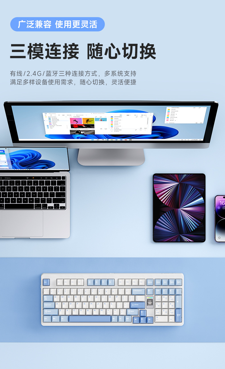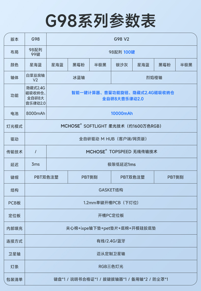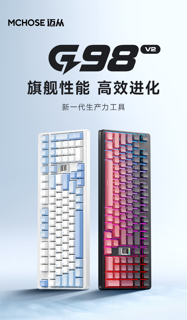 MCHOSE G98V2 맞춤형 기계식 키보드 가스켓 3 모드 핫 스왑 가능 게임용 기계식 키보드