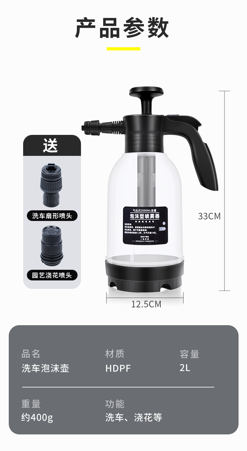 세차 거품 급수 가정용 핸드 헬드 세차 스프레이 원예 공기 압력 분무기 수동 냄비 2L스토어 가기