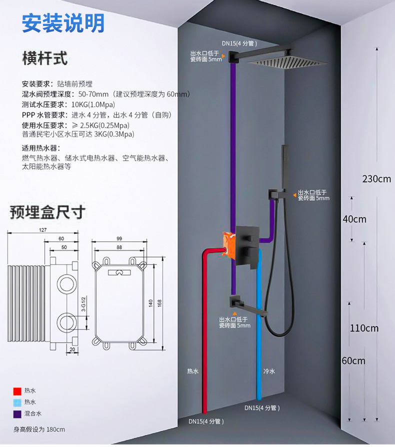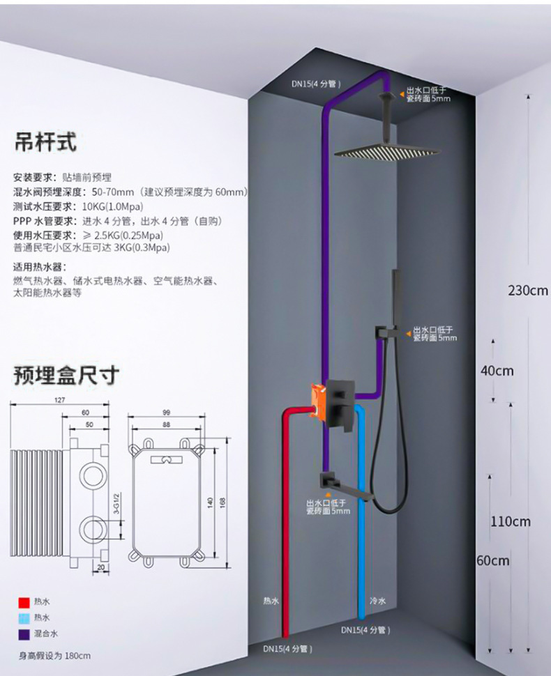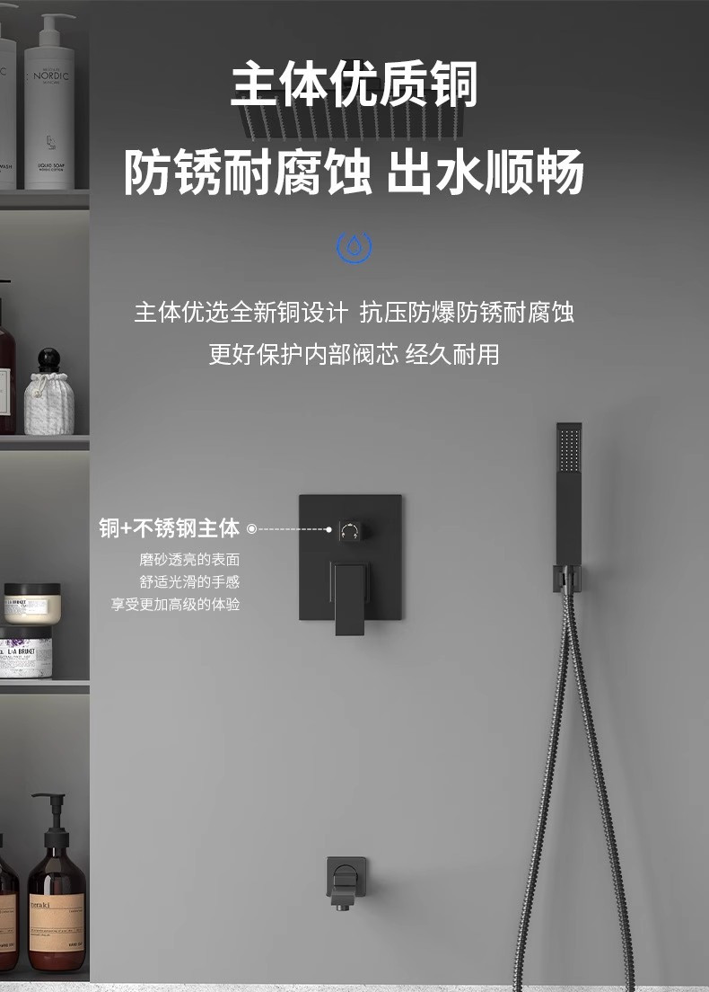 벽 매립형 샤워기 세트, 블랙 숨김형 내장형 샤워기, 골드 호텔 엔지니어링, 화이트 가정용스토어 가기