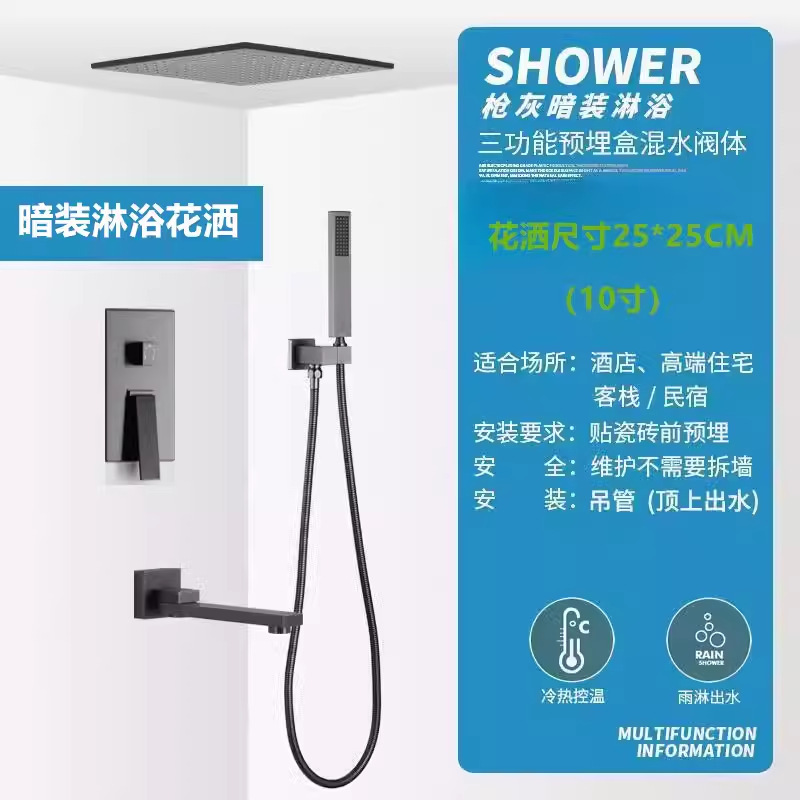 벽 매립형 샤워기 세트, 블랙 숨김형 내장형 샤워기, 골드 호텔 엔지니어링, 화이트 가정용