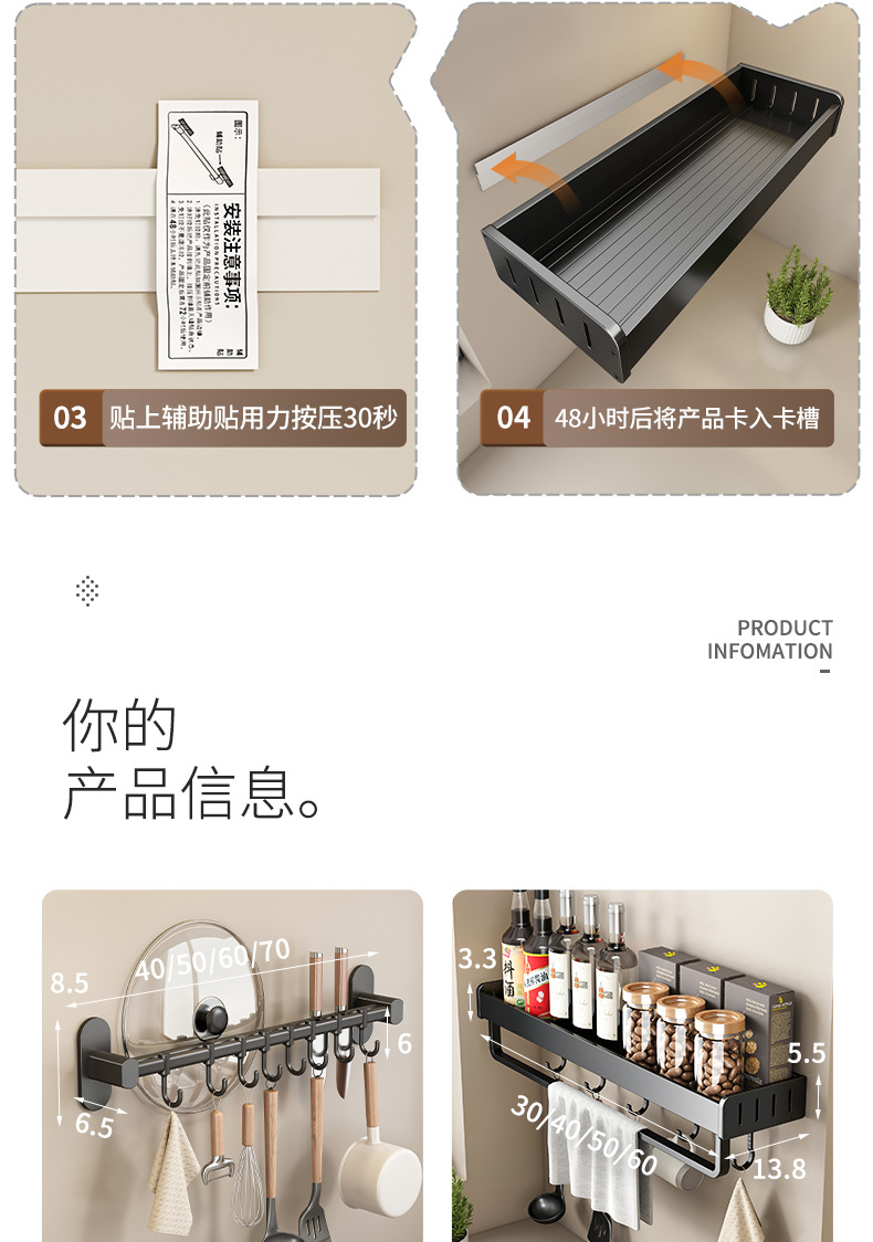 (2)安装请注意,墙面需平整坚固的玻璃瓷砖等,不可用在粉刷墙,墙纸,石灰墙等不平整不坚固的墙面上。涂胶上墙后需等待3-5天,免钉胶完全干透再使用!