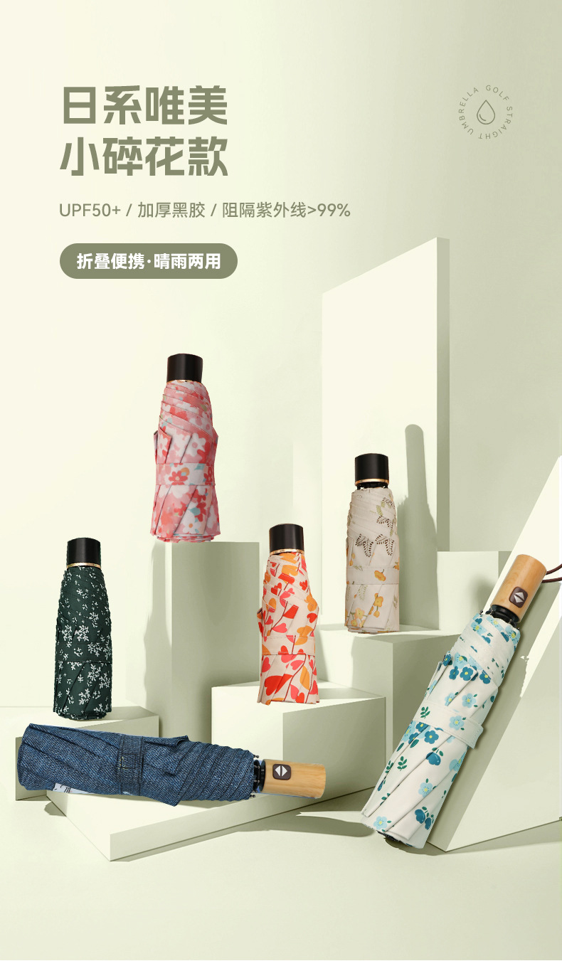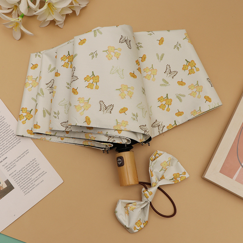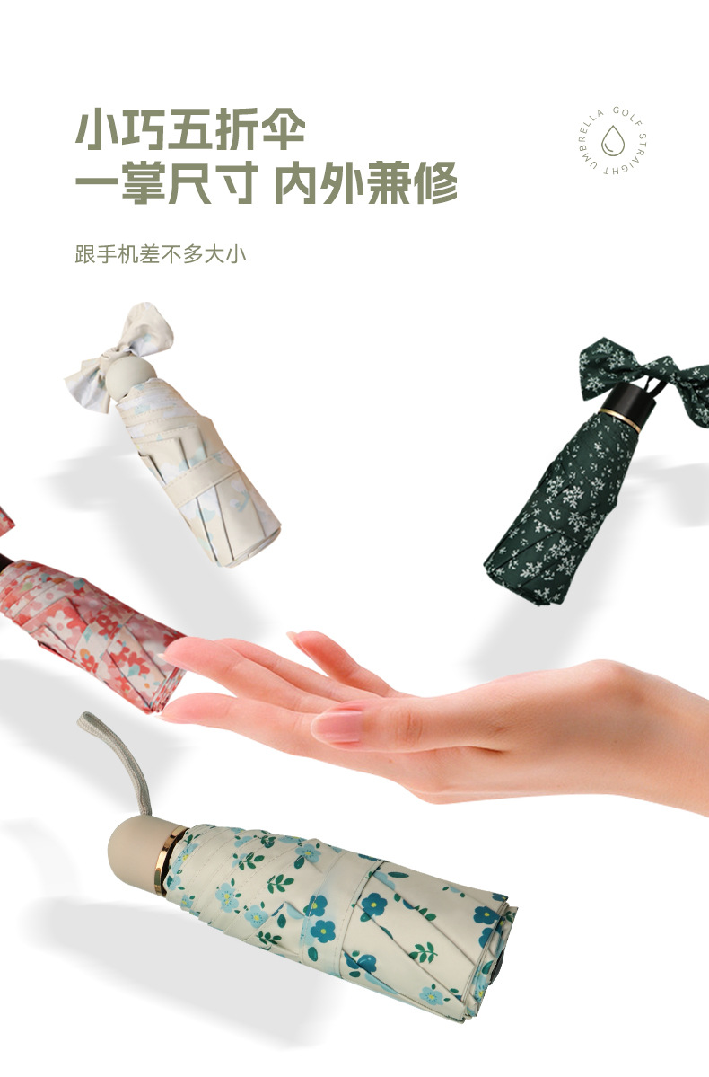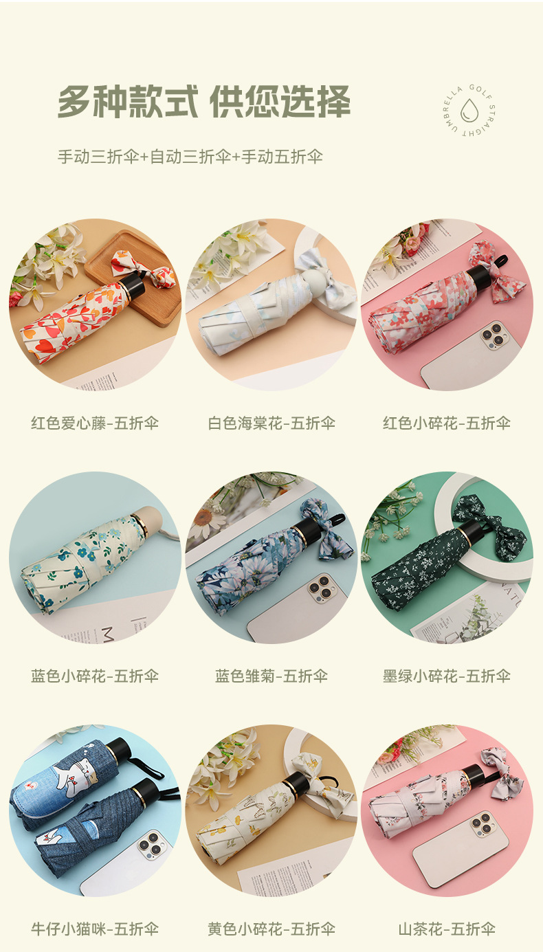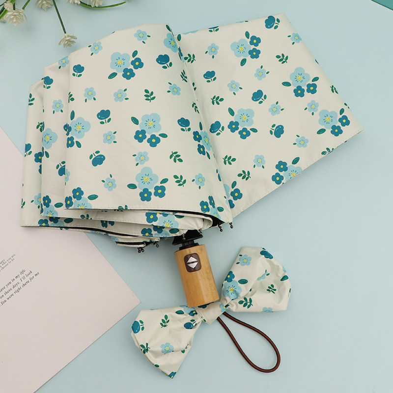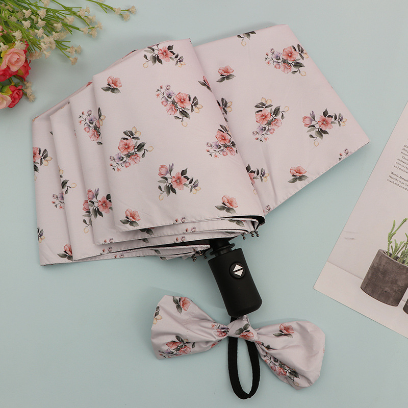 우산 접이식 우산 이중 사용 인쇄 높은 모양의 우산 5 배 태양 우산 소녀 완전 자동 태양 보호 우산