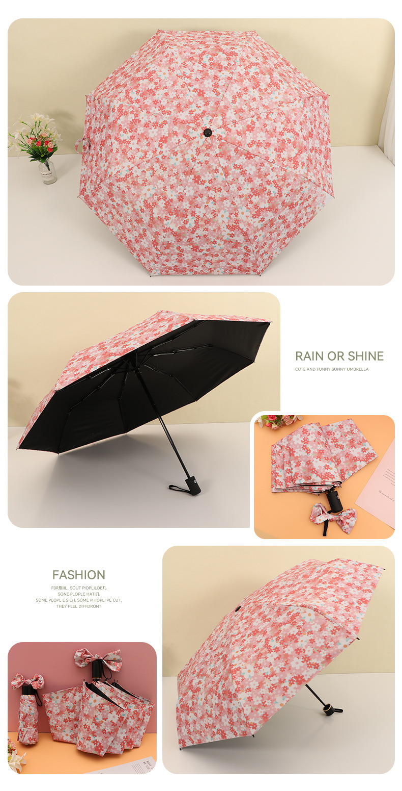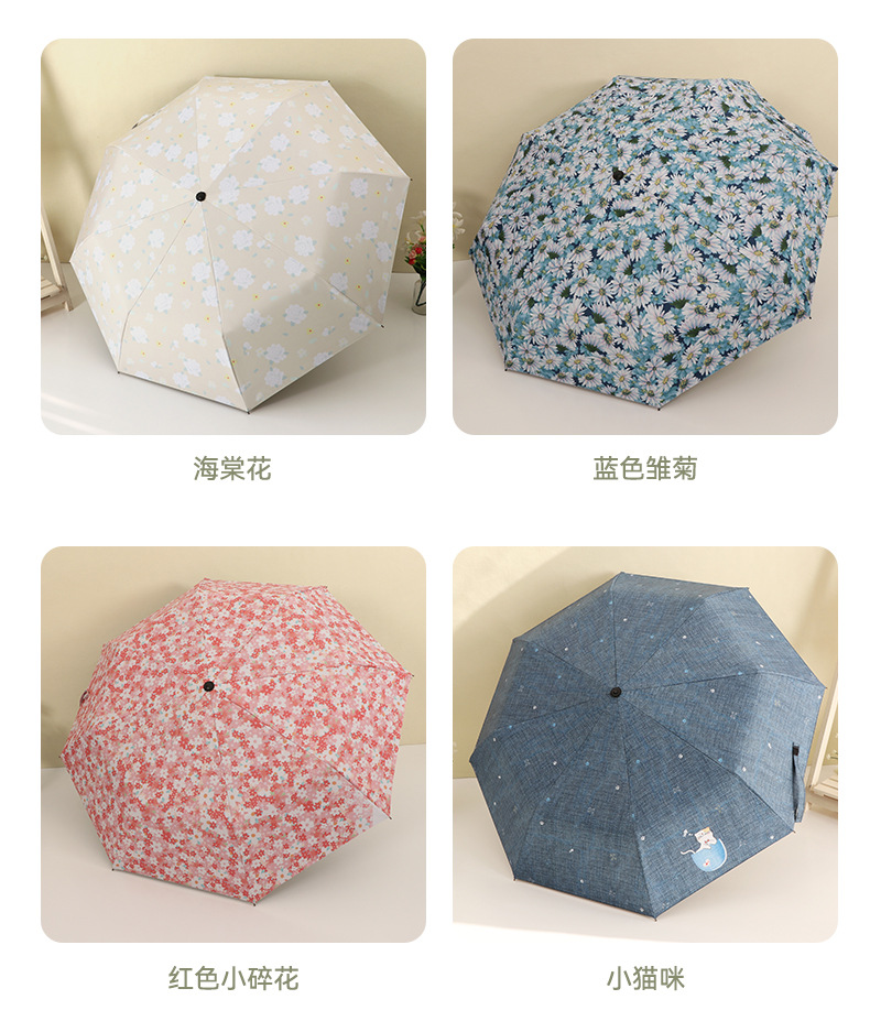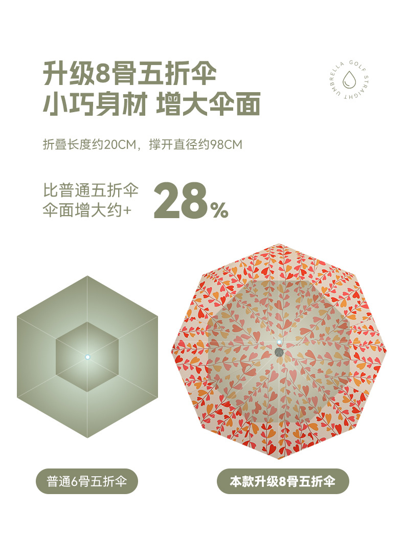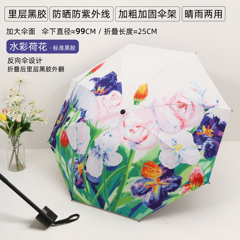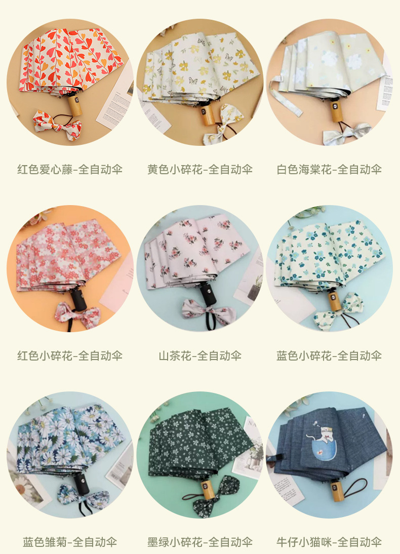 우산 접이식 우산 이중 사용 인쇄 높은 모양의 우산 5 배 태양 우산 소녀 완전 자동 태양 보호 우산