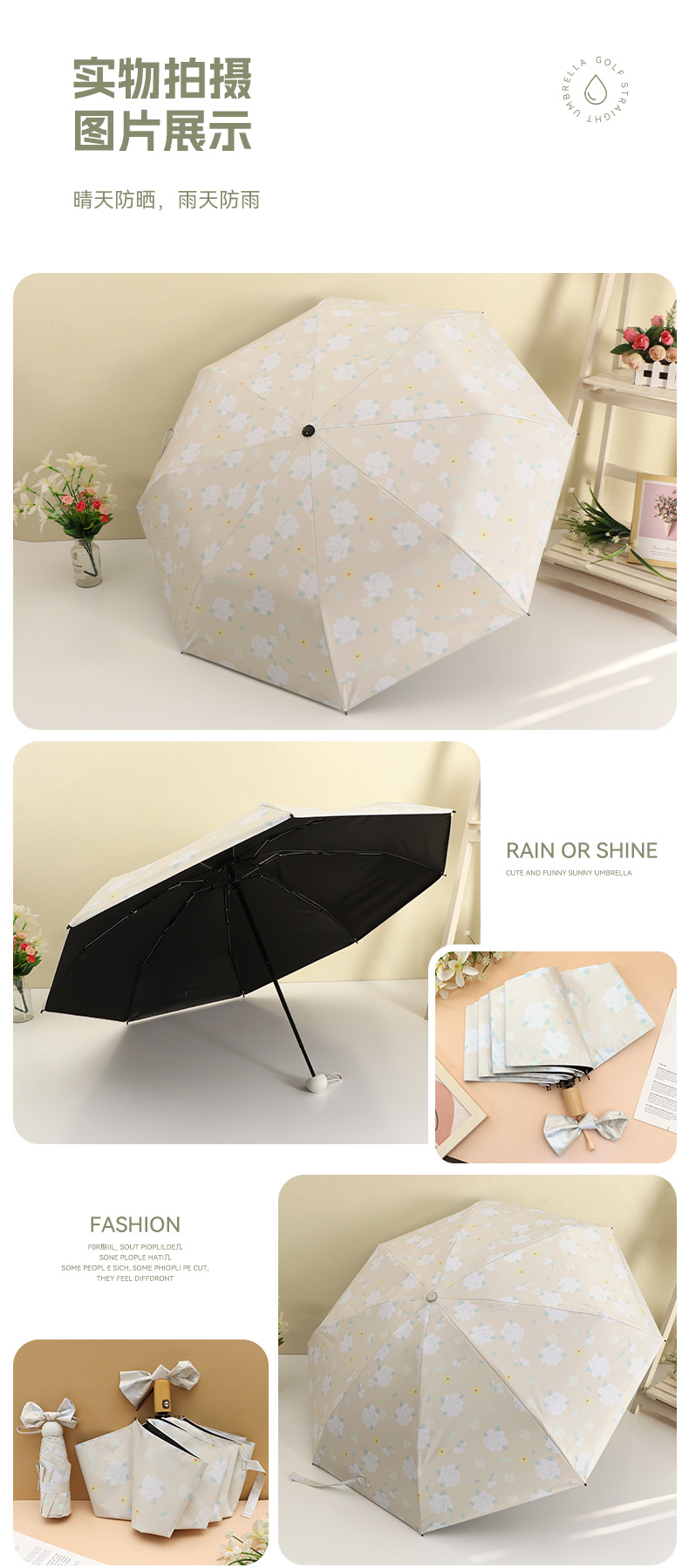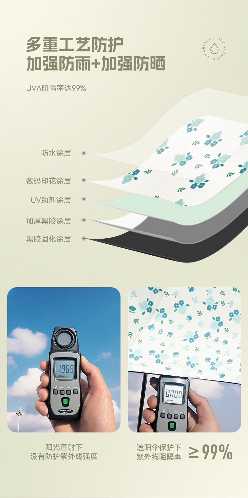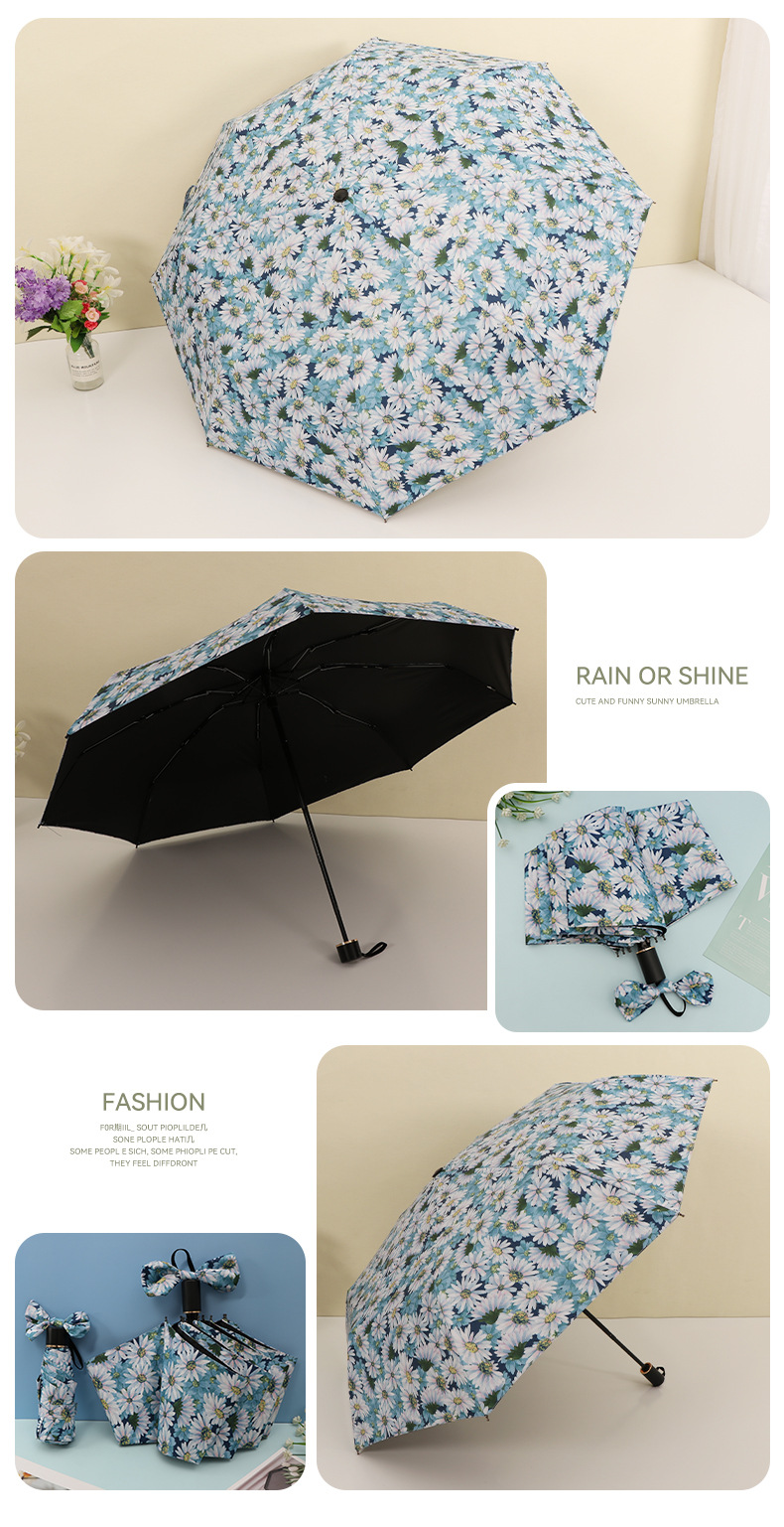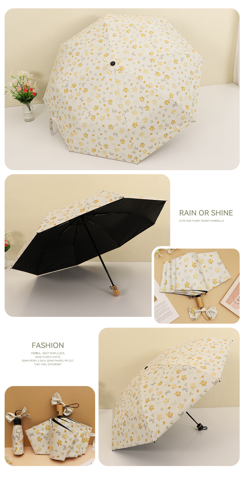 우산 접이식 우산 이중 사용 인쇄 높은 모양의 우산 5 배 태양 우산 소녀 완전 자동 태양 보호 우산