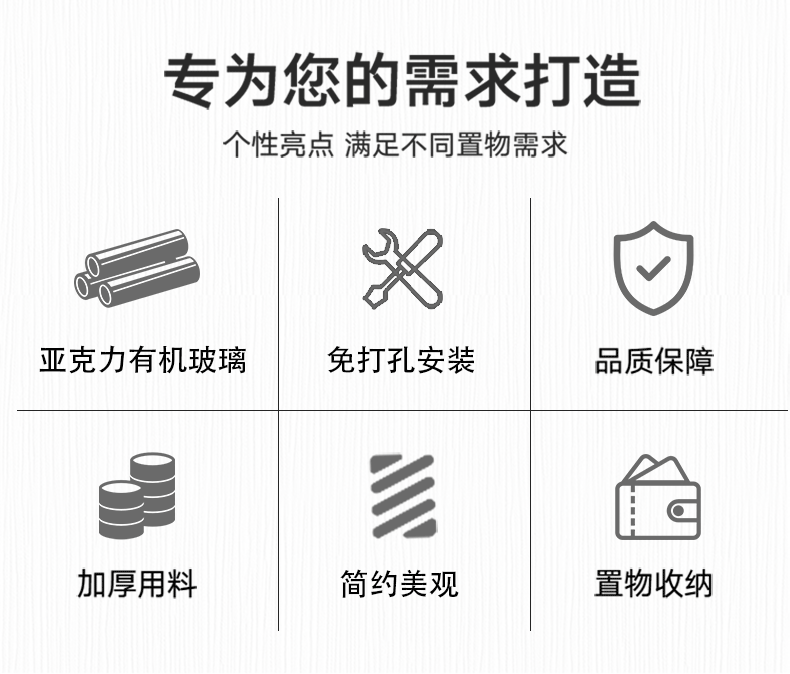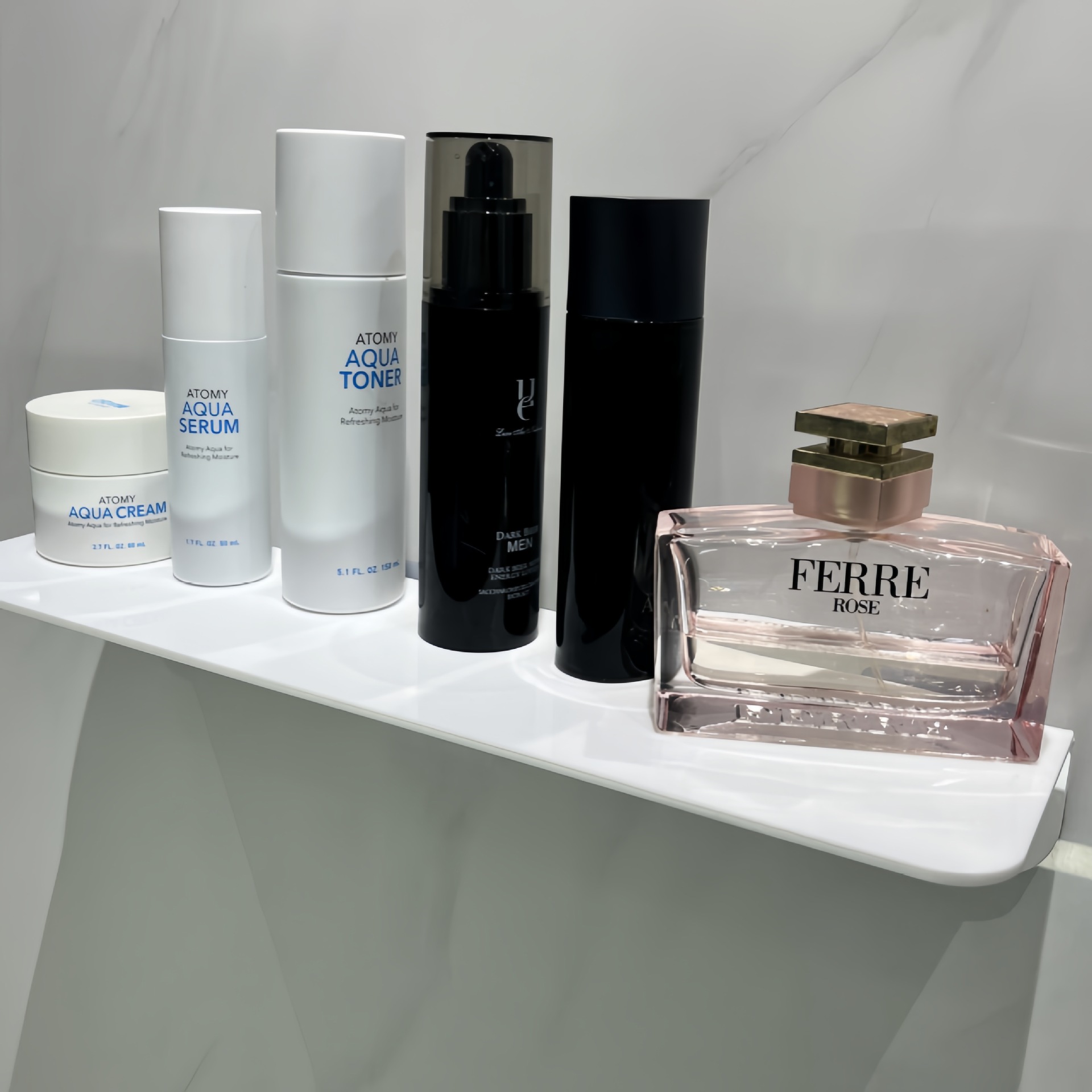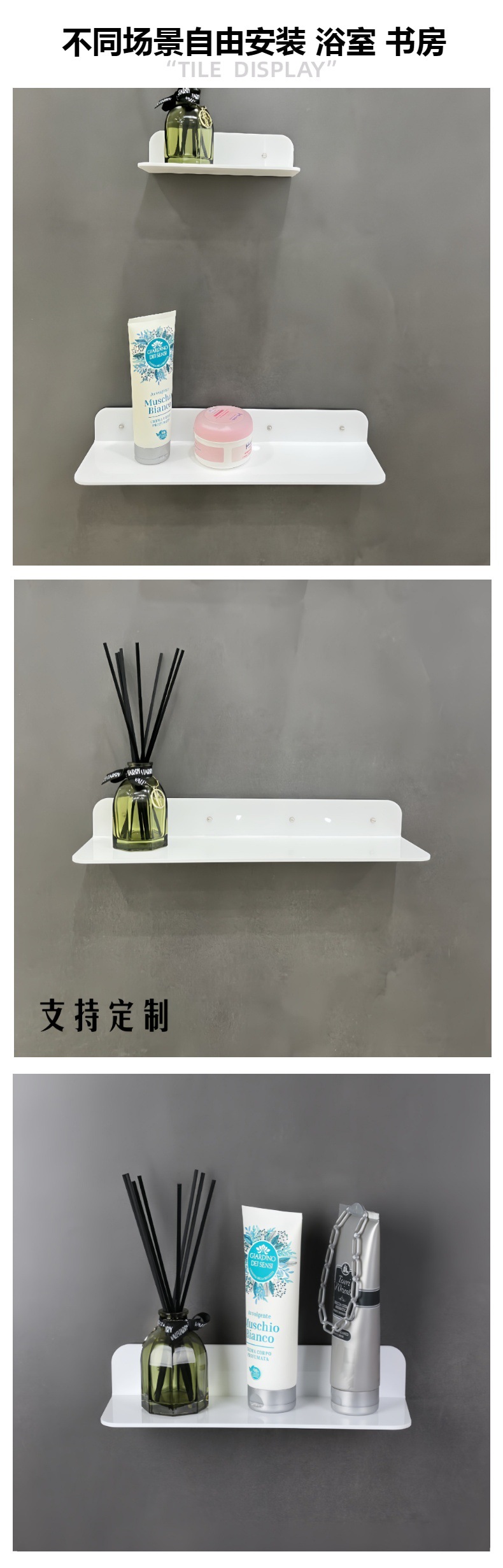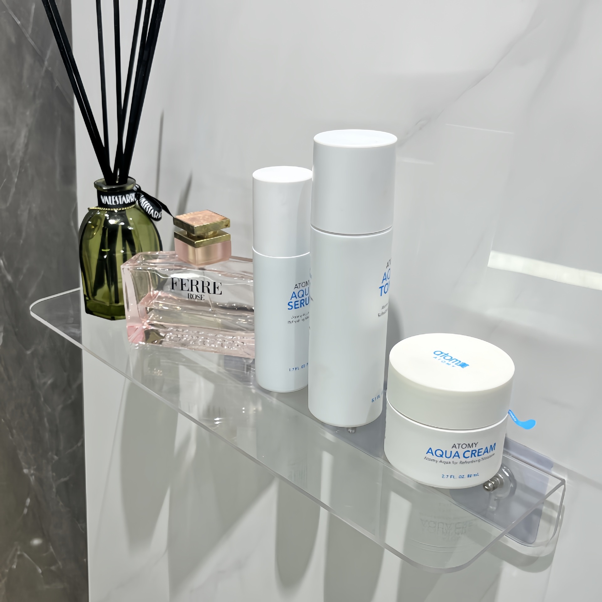 아크릴 L자형 수납선반, 무타공 욕실 수납선반, 벽걸이형 일자형 주방 정리선반