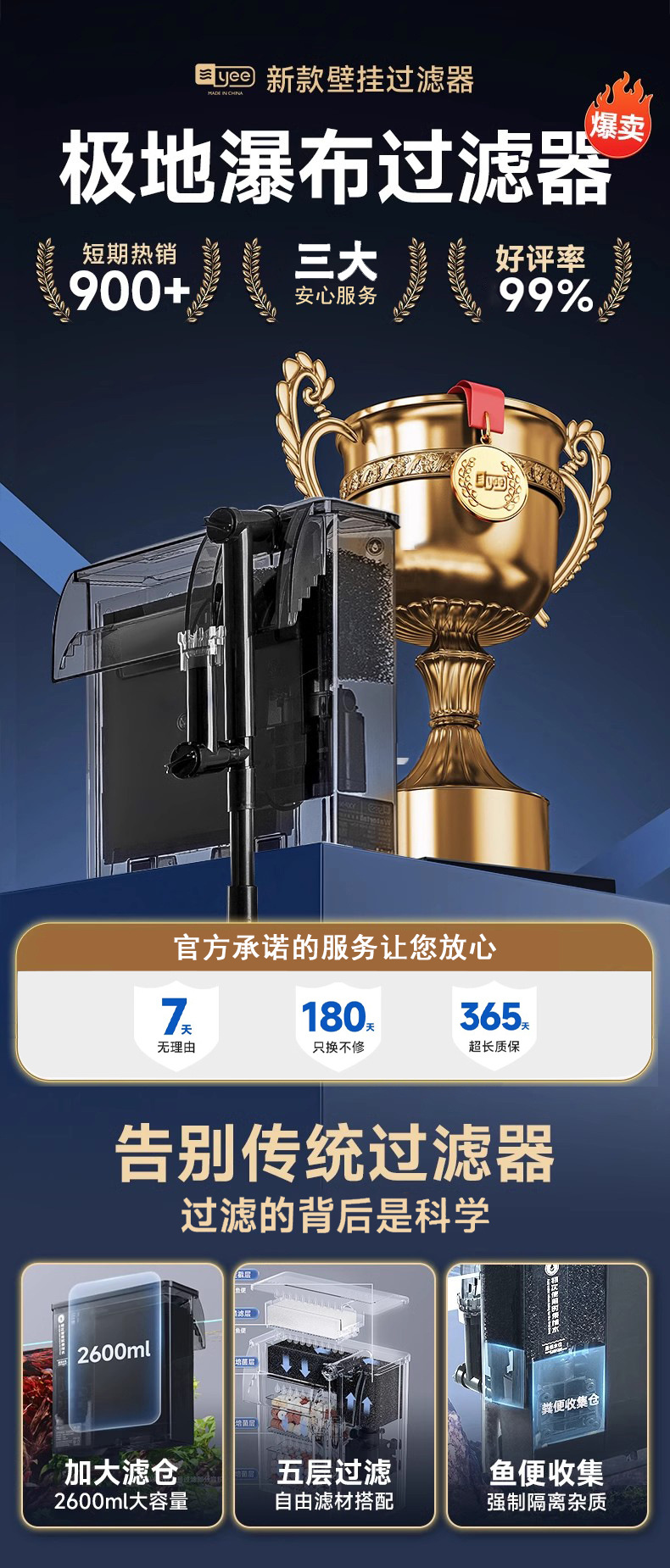 예 어항 필터 정수 사이클 3 대 1 음소거 워터 펌프 외부 폭포 벽에 장착 된 산소 올인원 기계스토어 가기