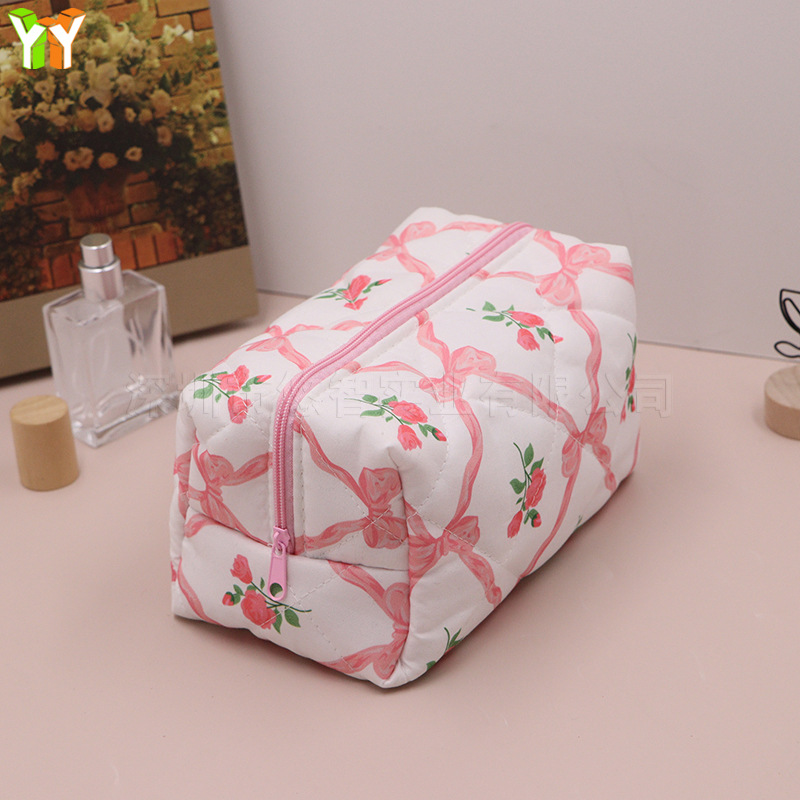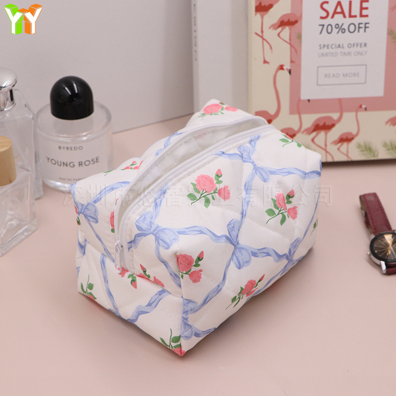 따뜻한 색상의 꽃봉오리 모양 귀여운 소녀 화장품 수납 순면 나비 메이크업 브러쉬 꽃무늬 직장용 소프트백 화장품 가방스토어 가기
