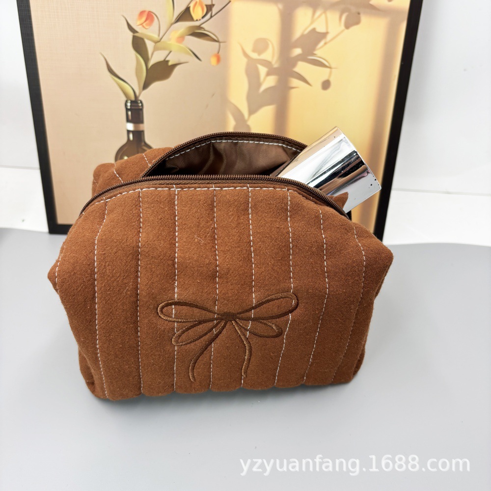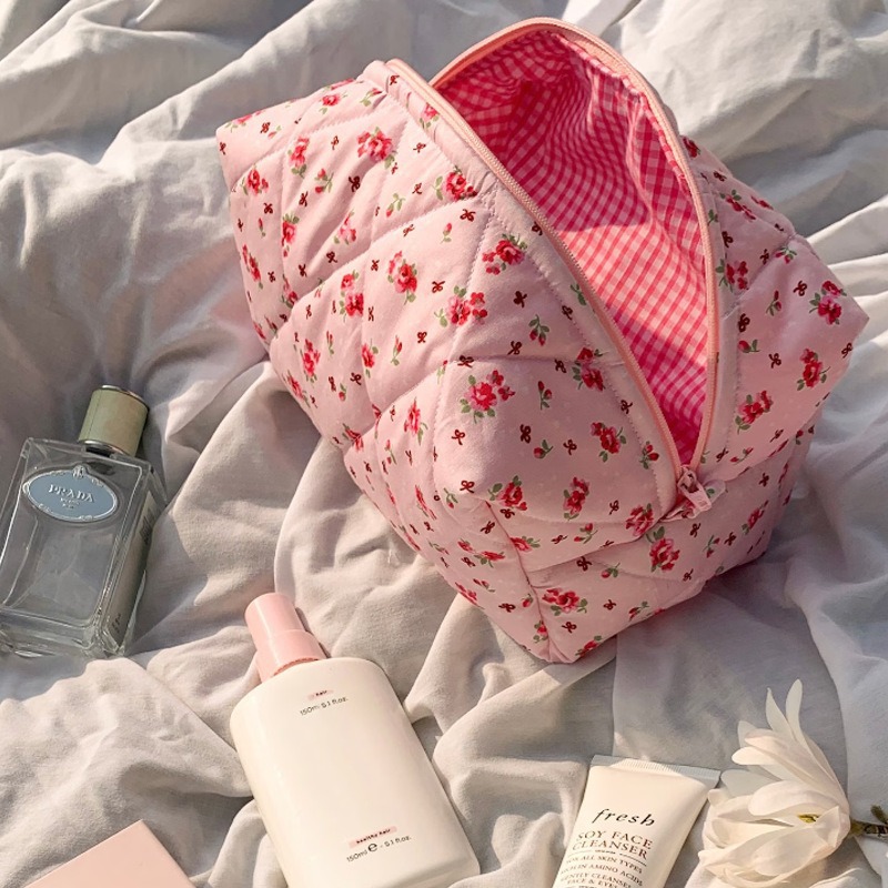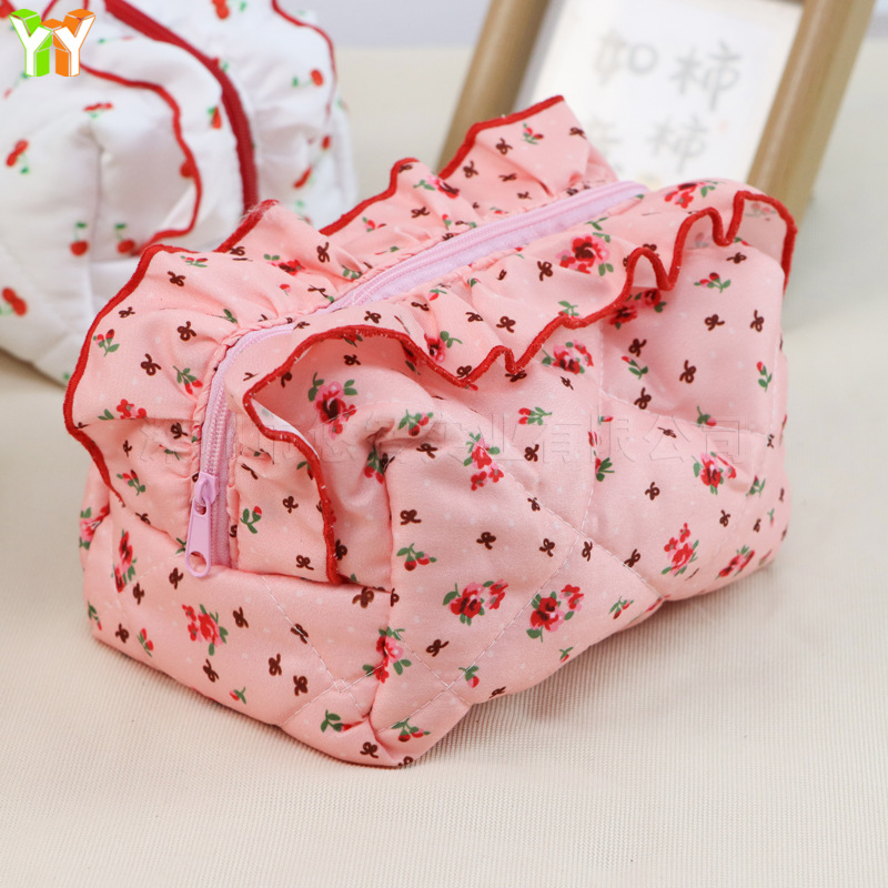 따뜻한 색상의 꽃봉오리 모양 귀여운 소녀 화장품 수납 순면 나비 메이크업 브러쉬 꽃무늬 직장용 소프트백 화장품 가방