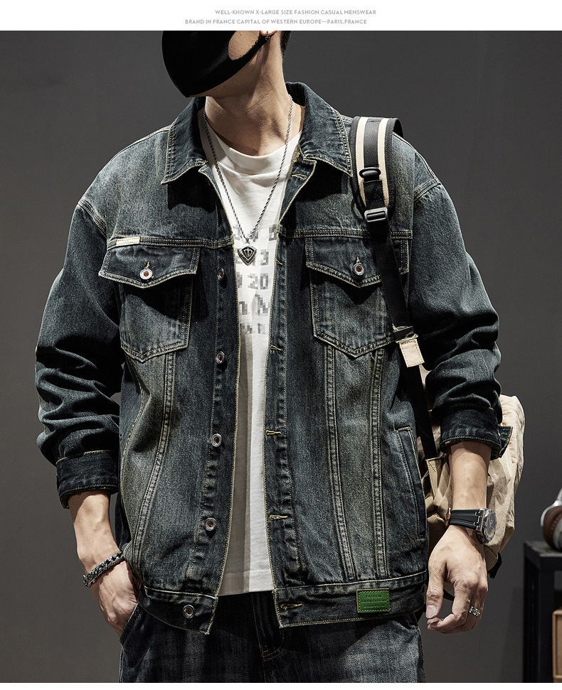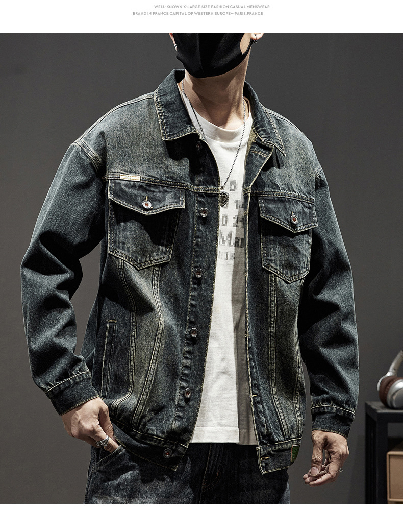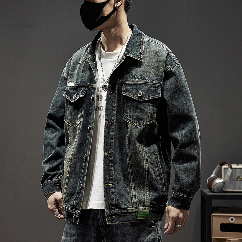 W1801 # 플러스 사이즈 남자 봄 새로운 중공업 세척 데님 재킷 남자의 느슨한 올 매치 레트로 데님 재킷스토어 가기