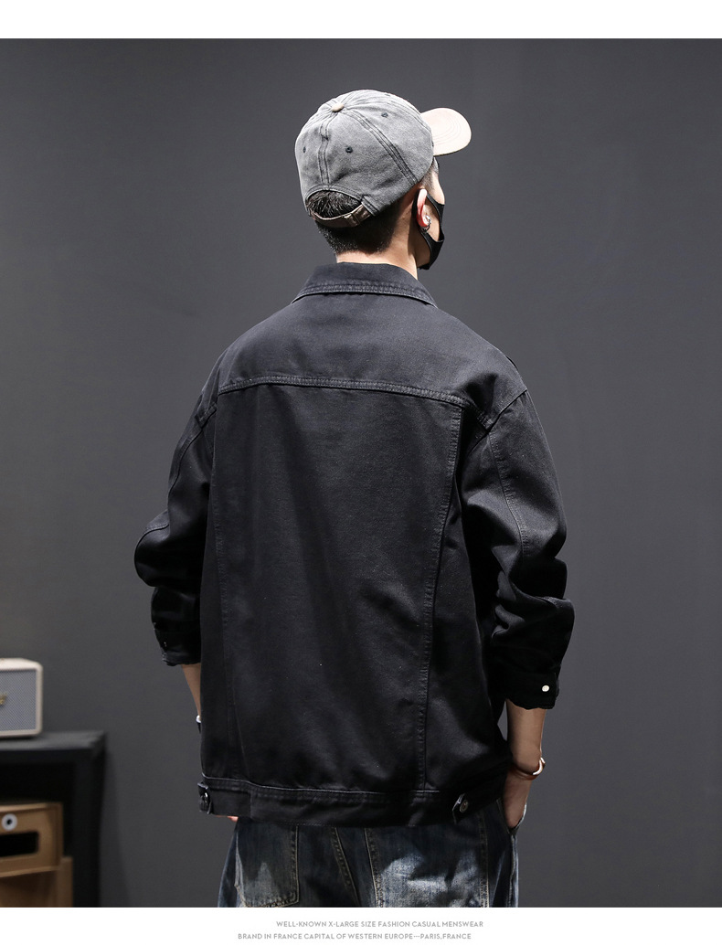 W1801 # 플러스 사이즈 남자 봄 새로운 중공업 세척 데님 재킷 남자의 느슨한 올 매치 레트로 데님 재킷