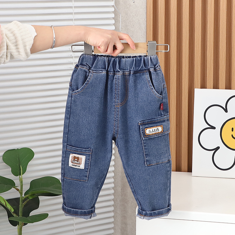 어린이 바지 소년 청바지 어린이 봄 바지 2024 새로운 어린이 바지 잘 생긴 캐주얼 아기 외부 바지스토어 가기