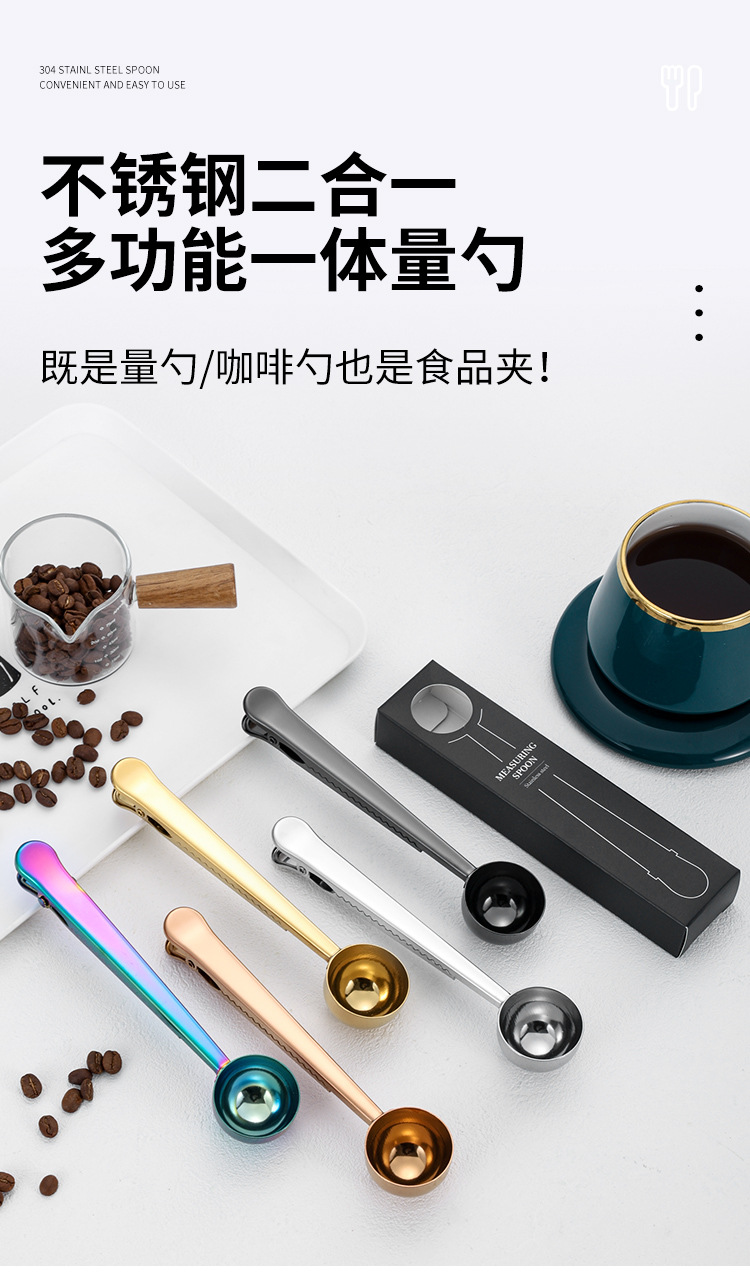 스테인레스 스틸 커피 스푼 클립 분유 숟가락 다기능 식품 주방 베이킹 실링 클립 국경 아마존