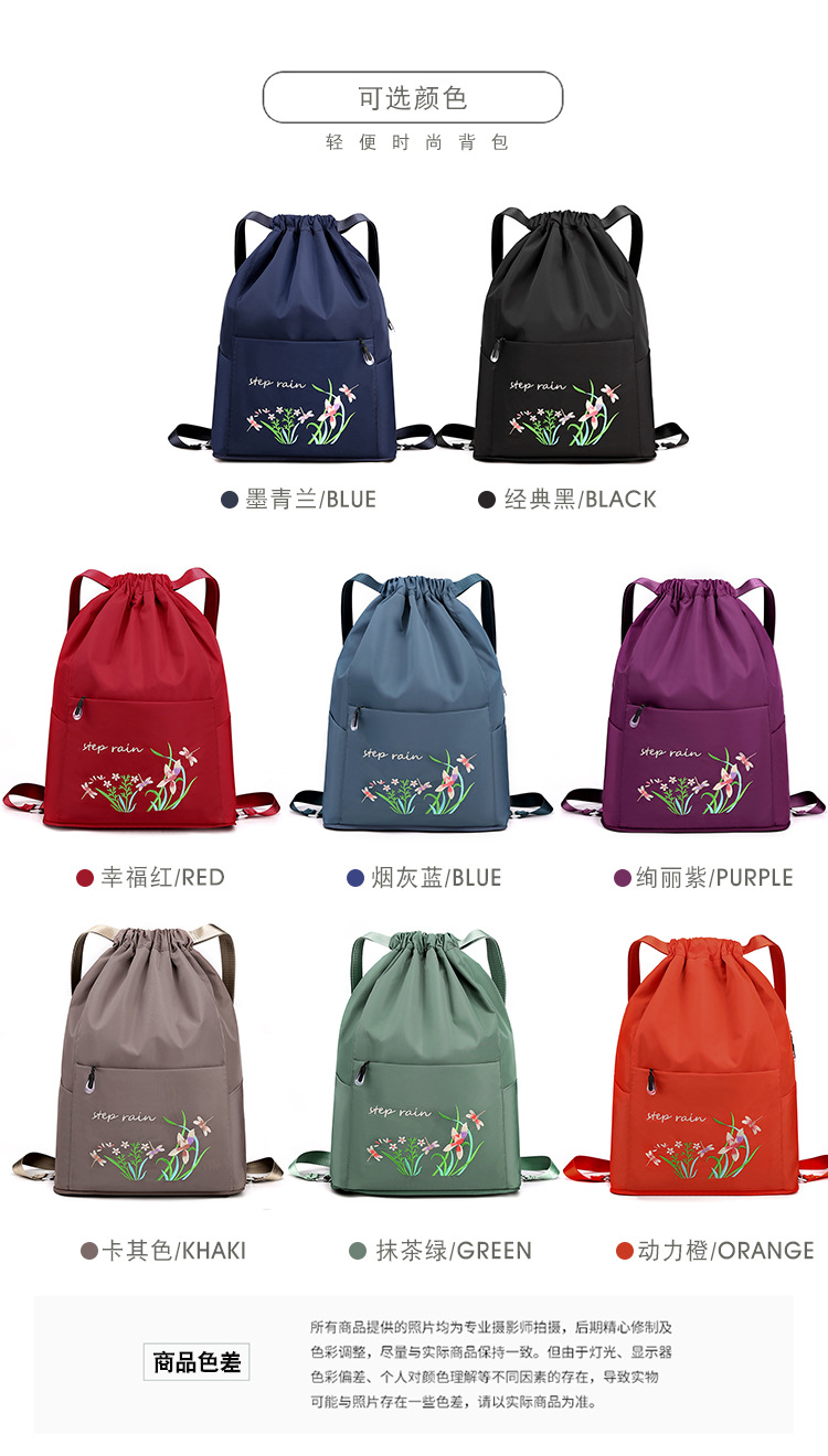 수 놓은 꽃 간단한 서랍 포켓 스킨 백 접이식 배낭 여성 스포츠 피트니스 스킨 백 라이트스토어 가기