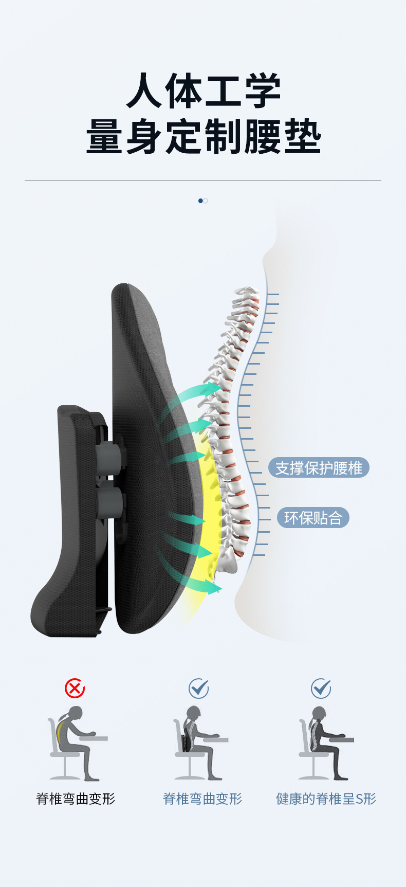 인체 공학적 허리 백 오피스 좌초 허리 쿠션 조정 가능한 의자 뒤 쿠션 자동차 허리 베개
