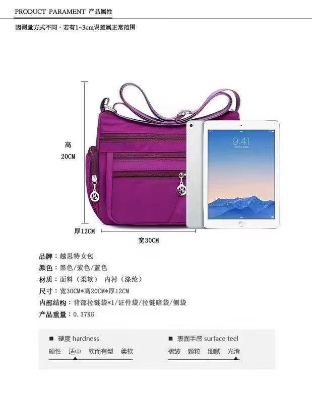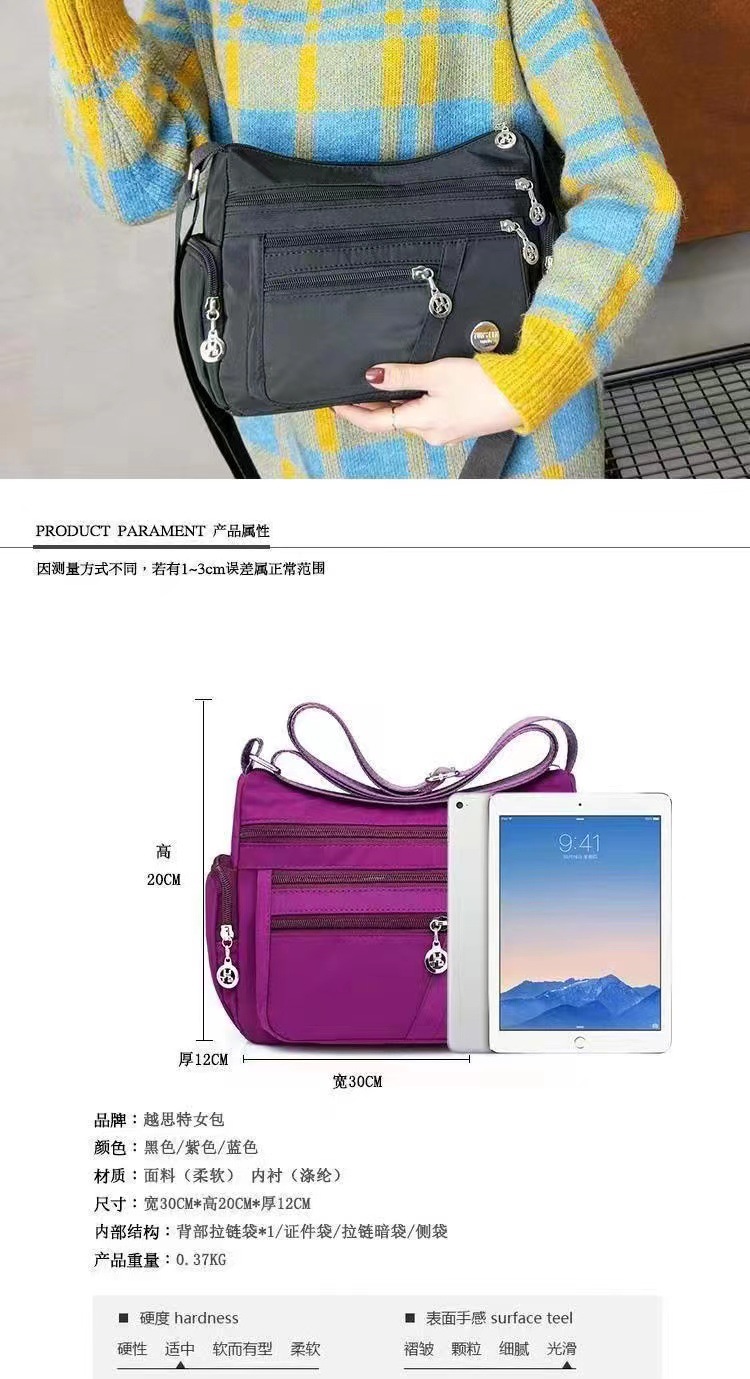 새로운 방수 옥스포드 천 여성 가방 멀티 구획 어깨 메신저 가방 패션 올 매치 여행 가방 중년 노인 어머니 가방