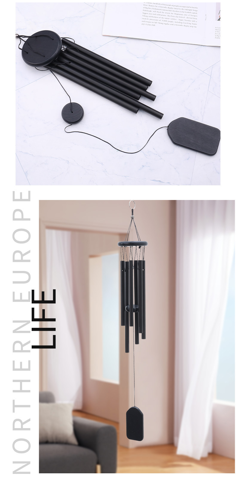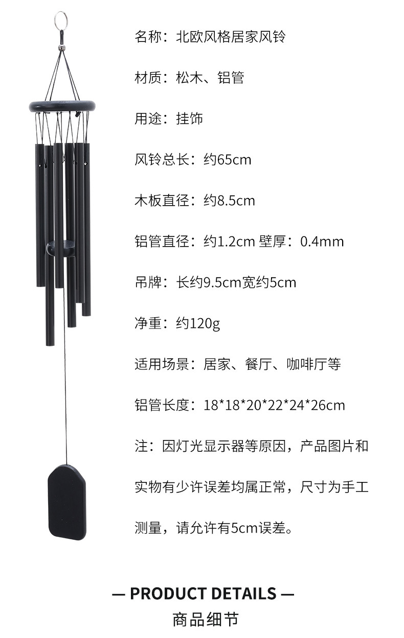 • 스몰 사이즈 바람 차임-블랙 우드 블랙 6 튜브