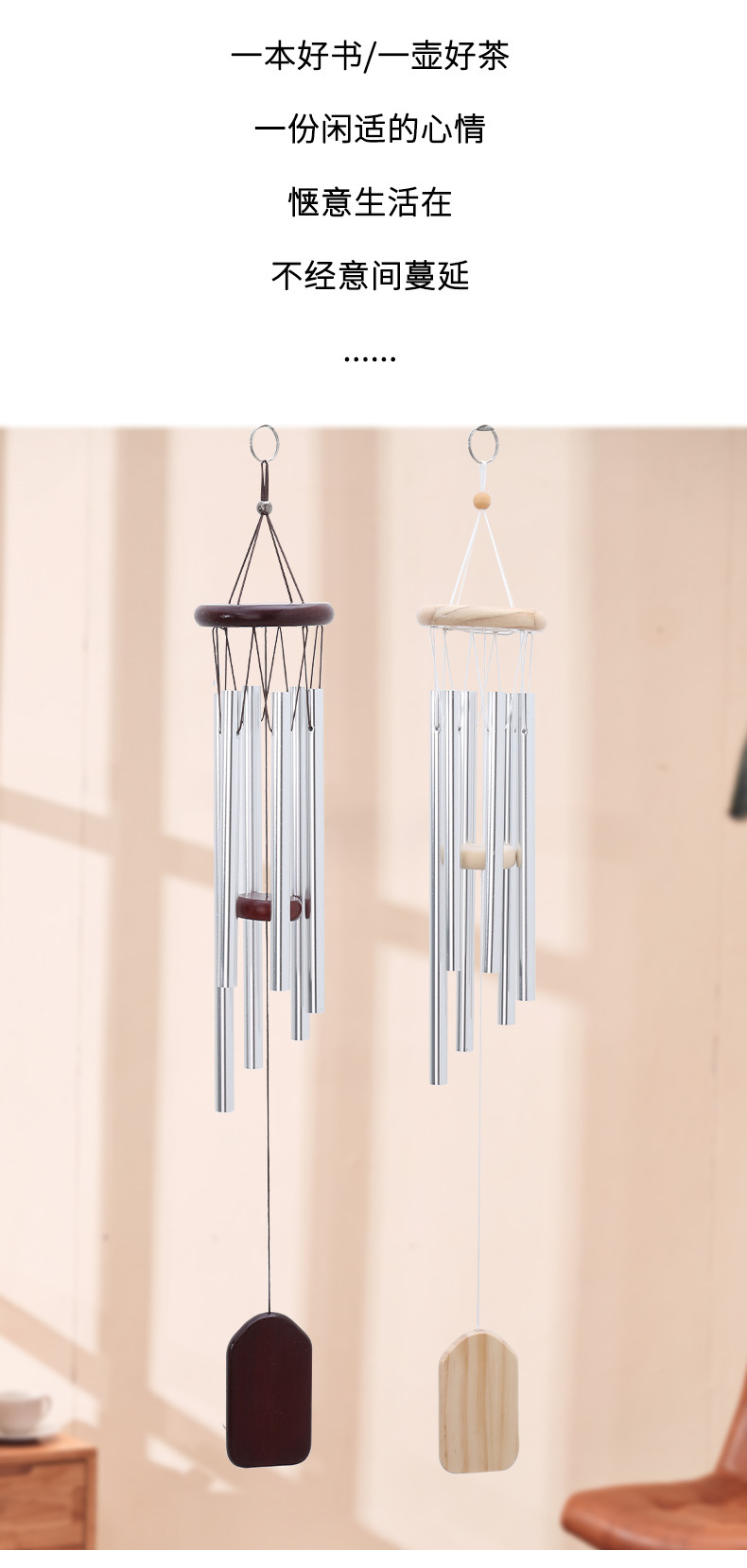 • 스몰 사이즈 바람 차임-천연 나무 실버 6 개의 튜브