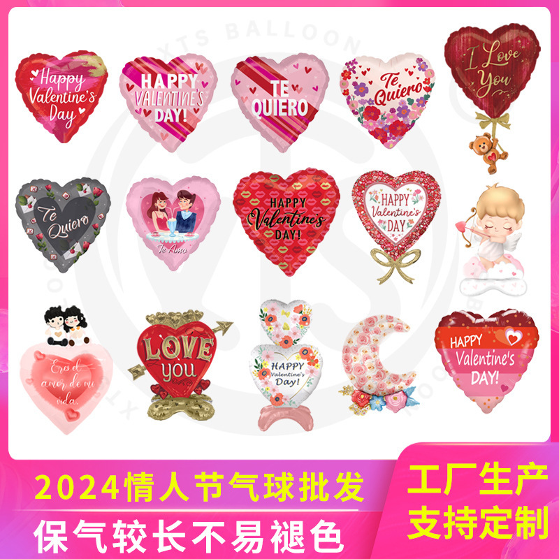 2024 새로운 하트 모양의 알루미늄 풍선 발렌타인 데이 사랑 결혼식 파티 고백 장식 풍선